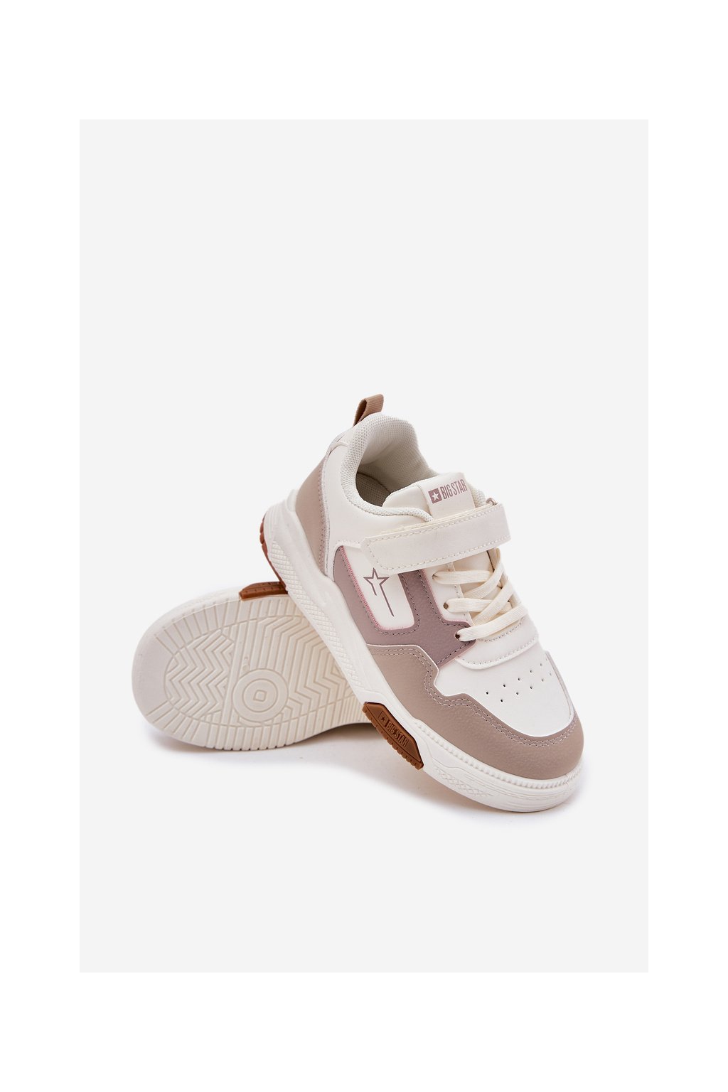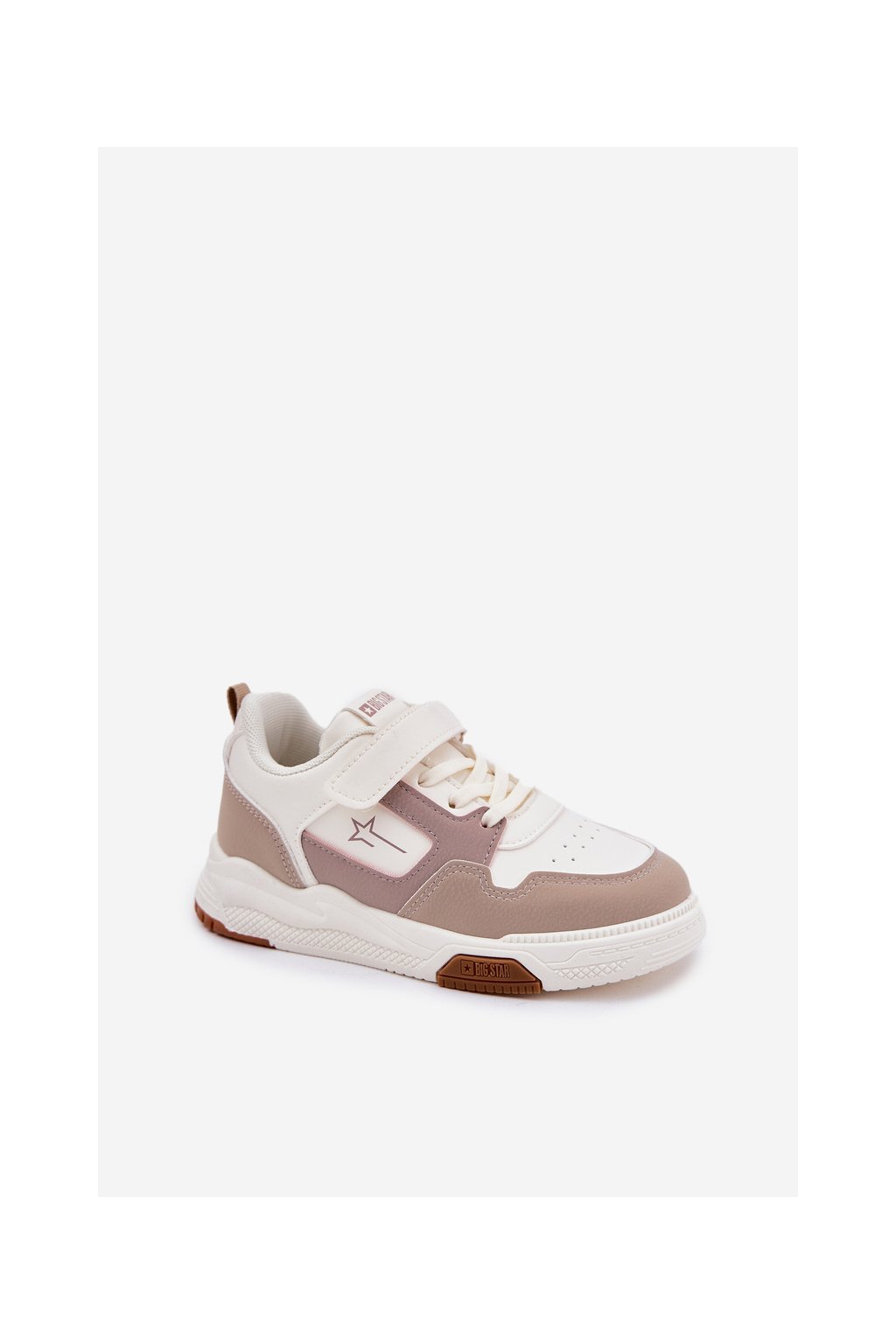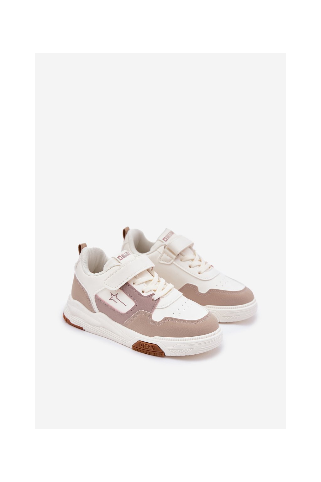 Béžové detské tenisky Big Star RR374055 z eko kože na rovnej podrážke so suchým zipsom