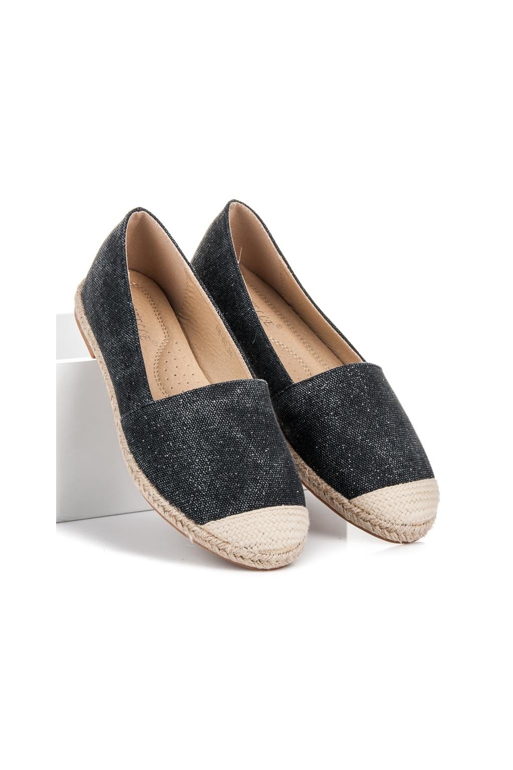 Čierne dámske módne espadrilky s brokátovým vzorom na zastavanej päte, s eko koženou vložkou, kód produktu H8-60B