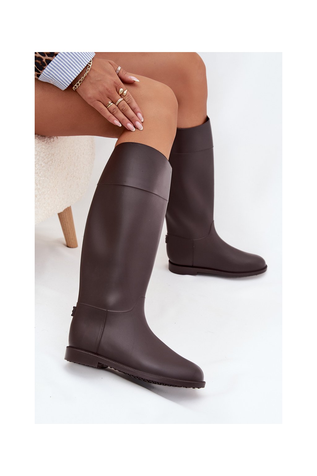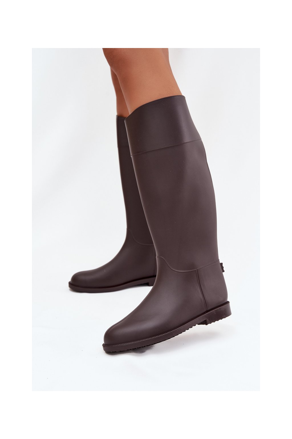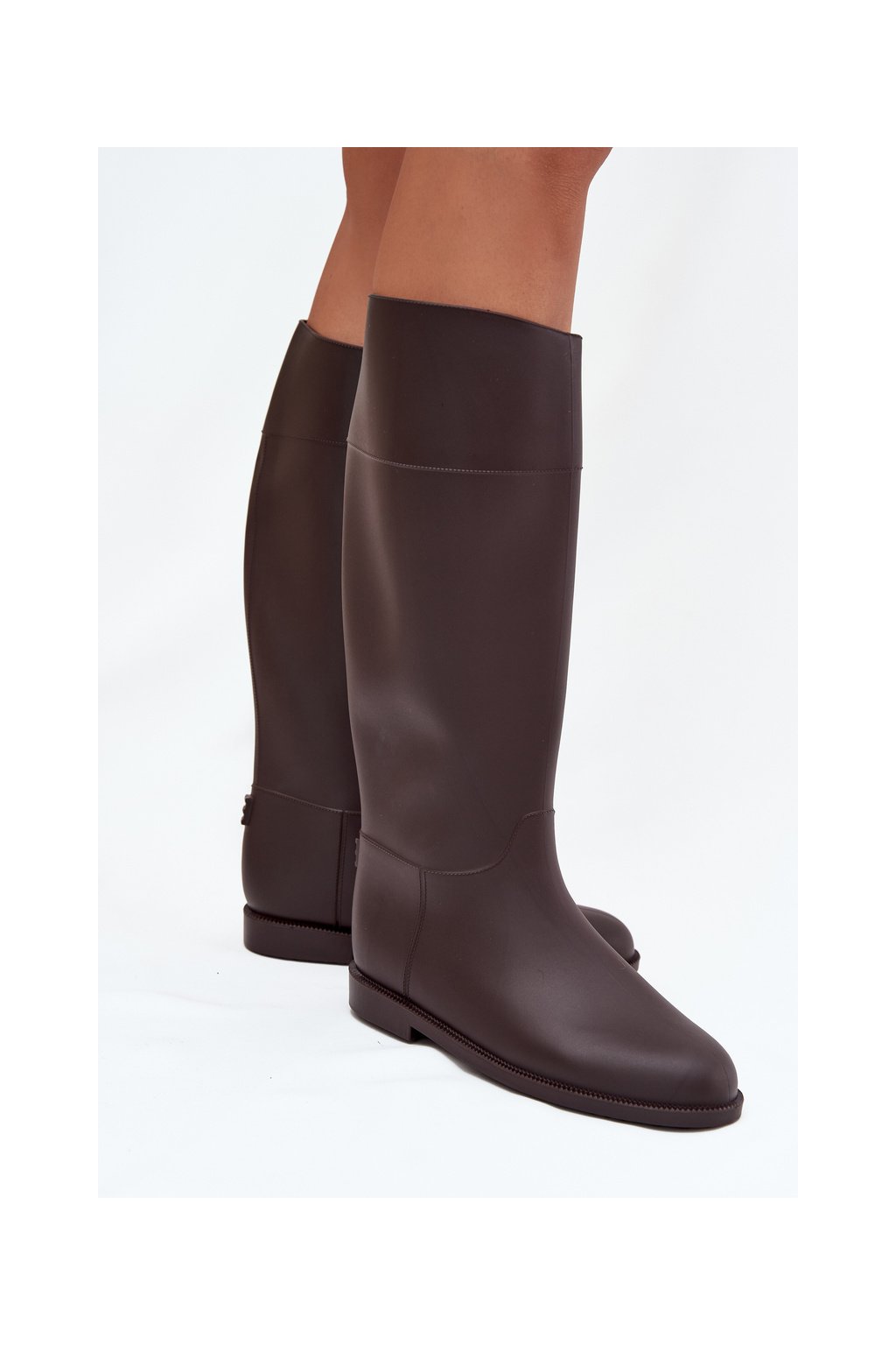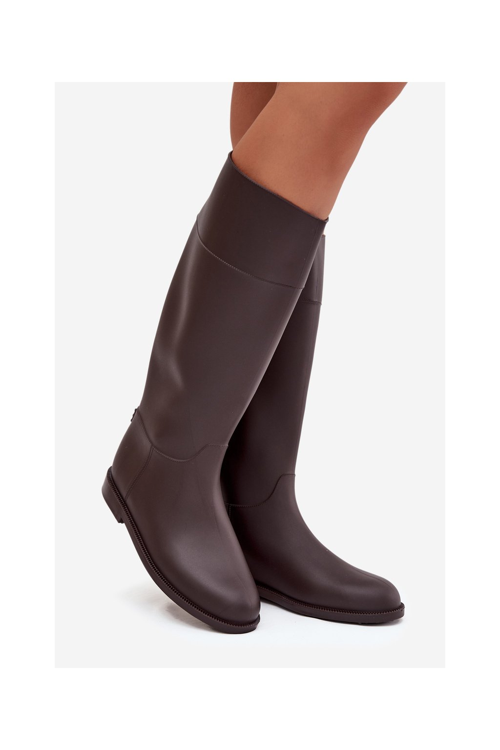 Vysoké dámské holínky na ploché podrážce čokoládové Melianne