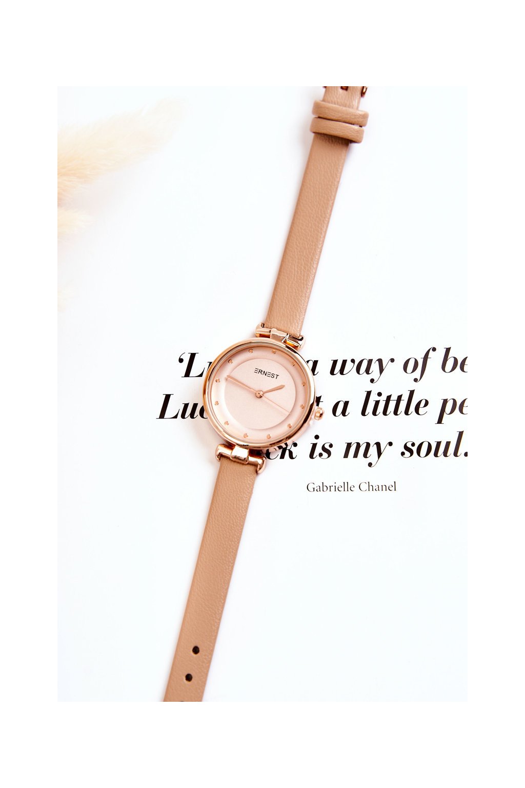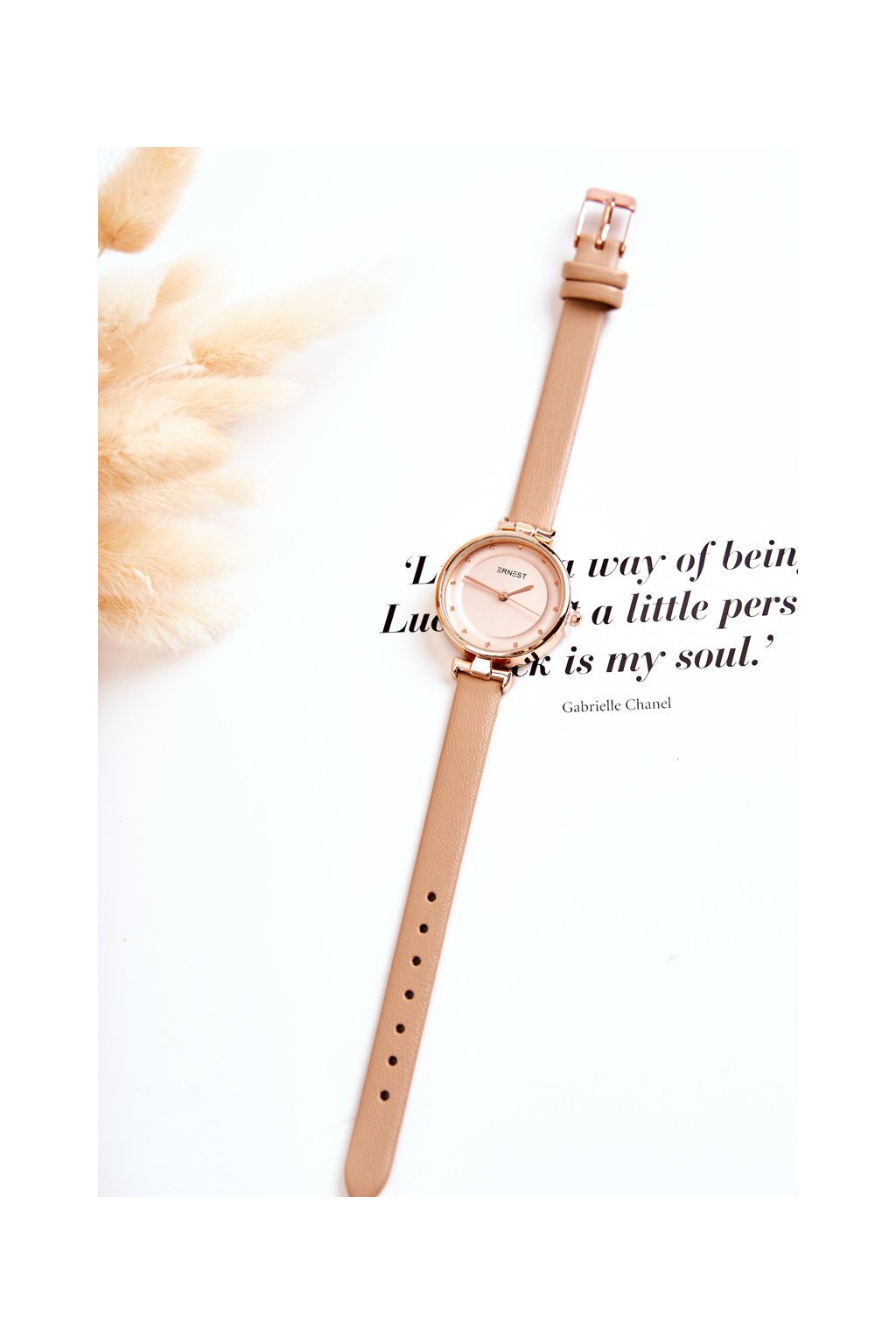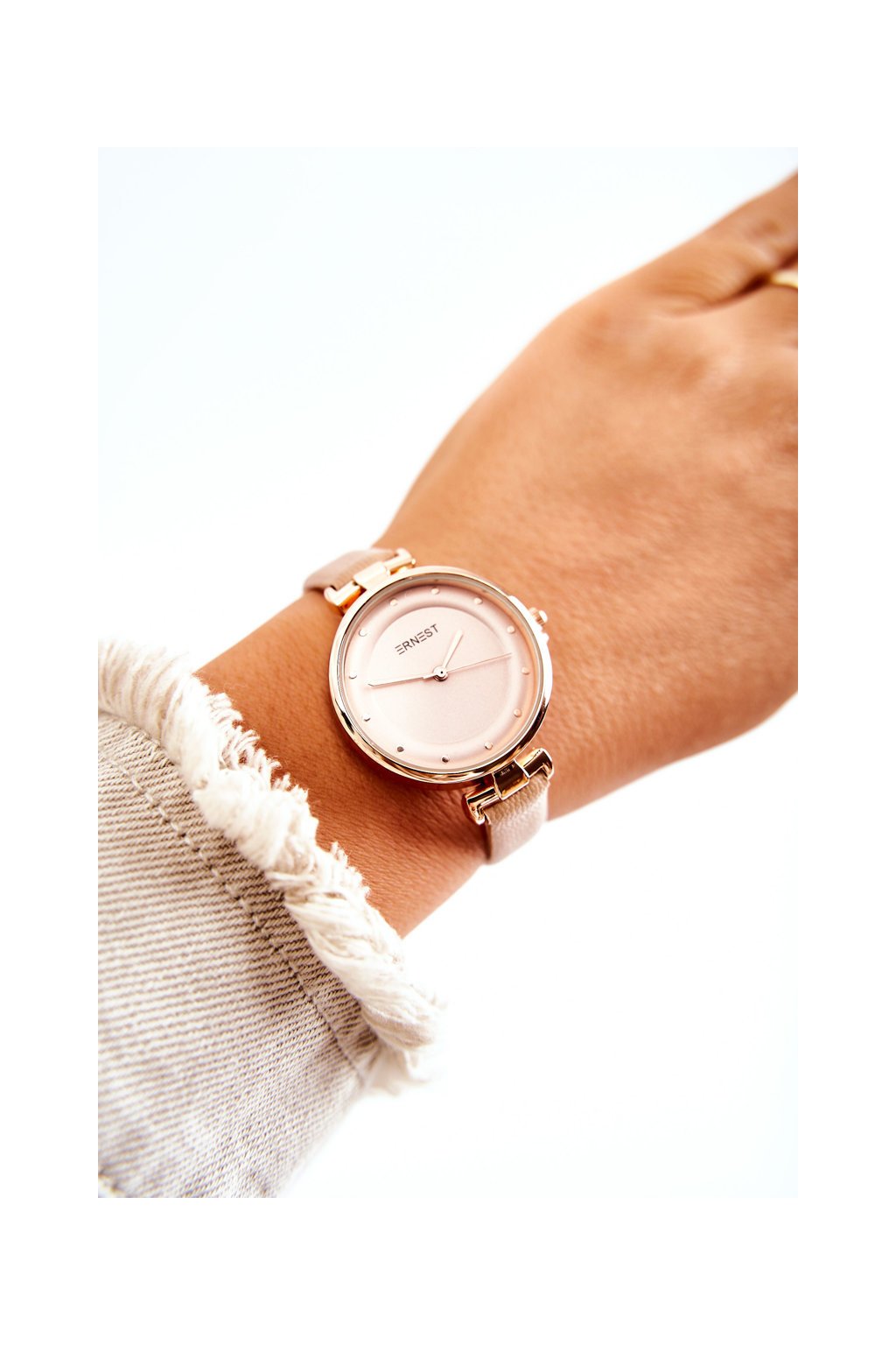 Dámske analogové hodinky ernest béžový / E97295 BEIGE