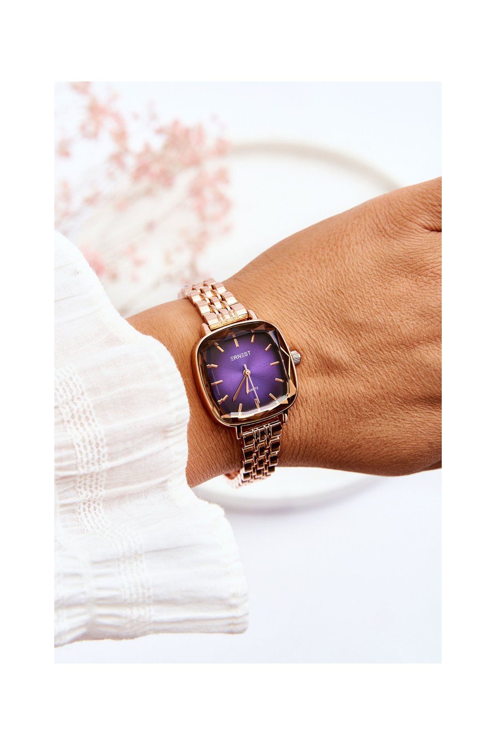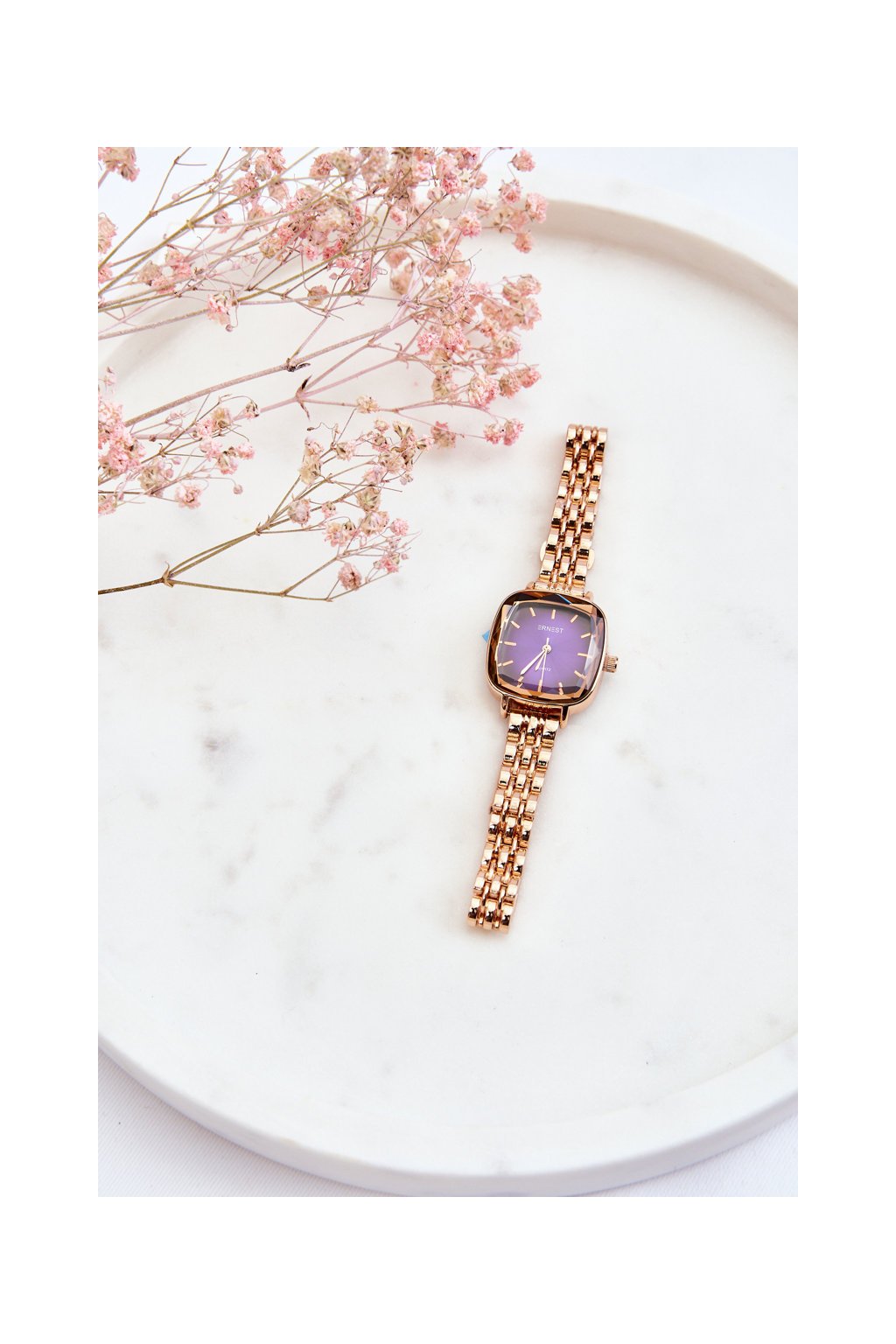 Módní hodinky S růžovým ciferníkem ERNEST Růžové zlato