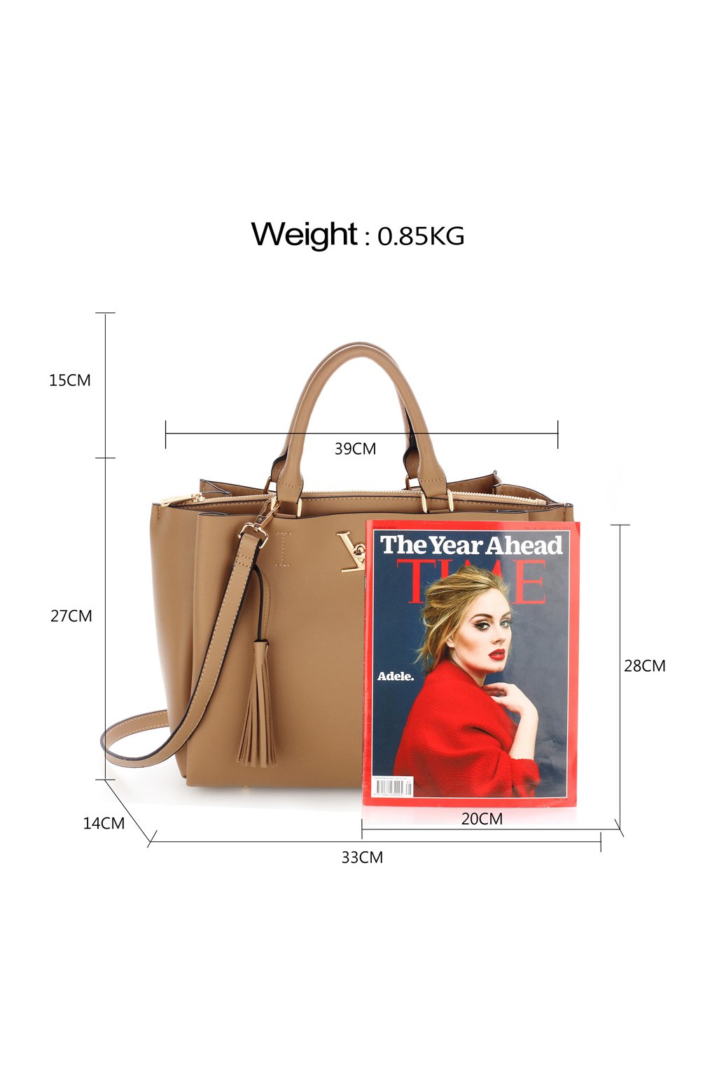 Trendová kabelka z kolekcie LS fashion. Vnútornú časť kabelky tvorí textílna podšívka. Kabelka je uzatváraná na zips. Kabelka je vyrobená z eko kože. Vhodná na nosenie predovšetkým v ruke alebo na predlaktí. Vo vnútri je malá priehradka. Kabelka má hladký povrch. Rozmery: (33x14x27x39cm).