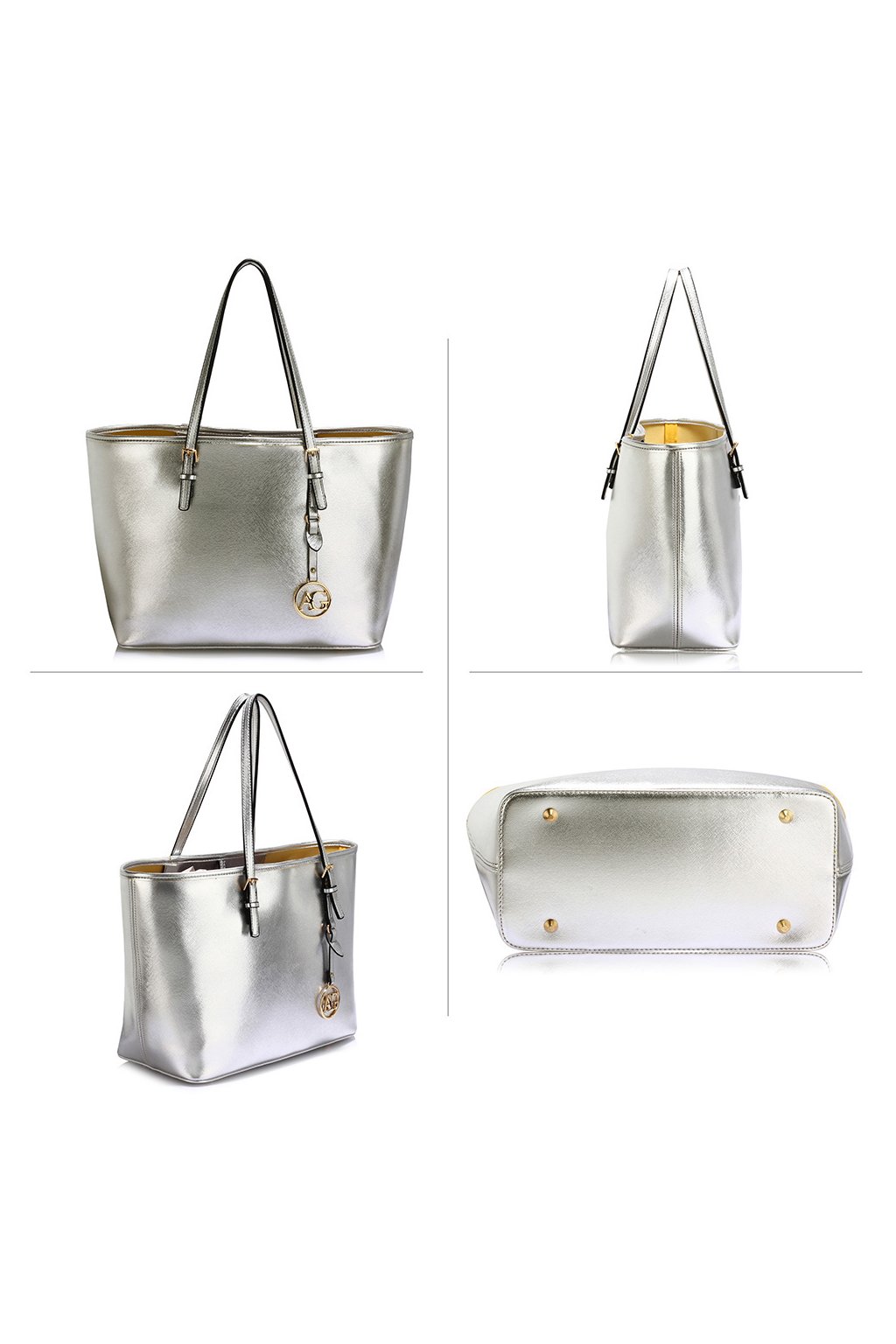 Strieborná dámska kabelka na rameno s prídavným ramienkom z eko koženého materiálu Heidi AG00297