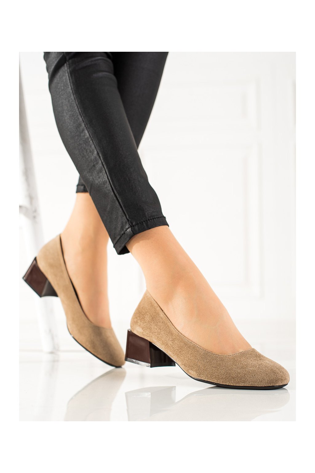 Tyto lodičky jsou vyrobeny z vysokokvalitní imitace zamszu, která vypadá a cítí se jako pravá kůže. Bežová barva je klasická a všestranná, takže se snadno hodí k jakémukoli outfitu. Výška podpatku je ideální pro celodenní nošení bez nepohodlí.