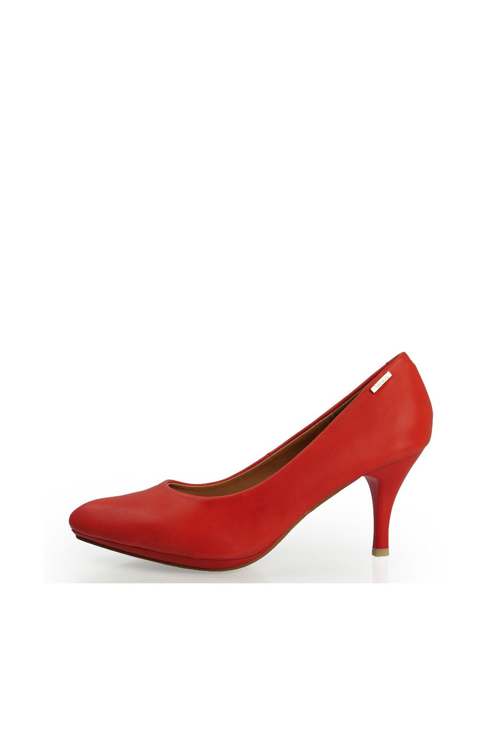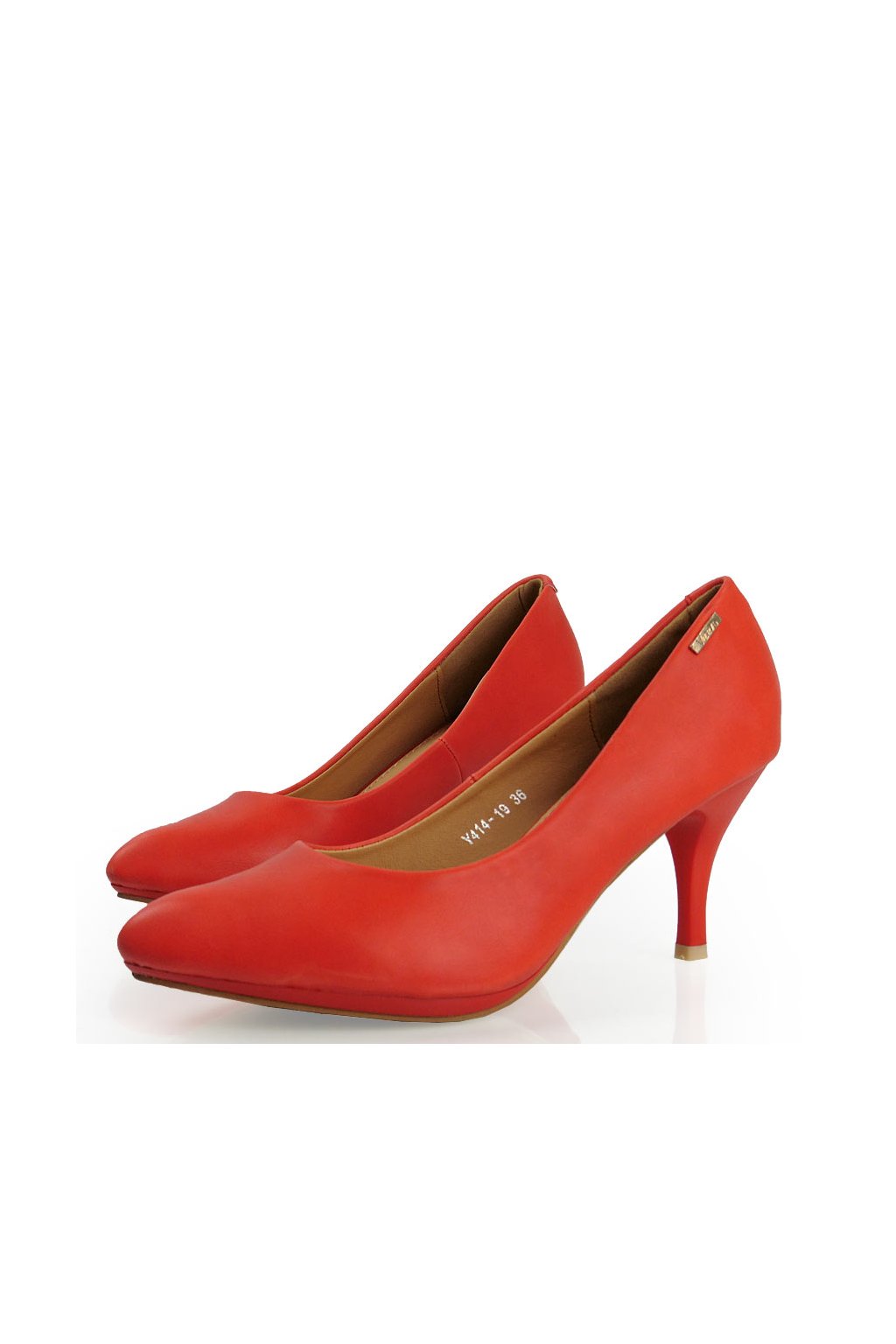 Červené dámske lodičky z eko kože s uzavretou špičkou, výška opätku 6cm, kód produktu Y414-19