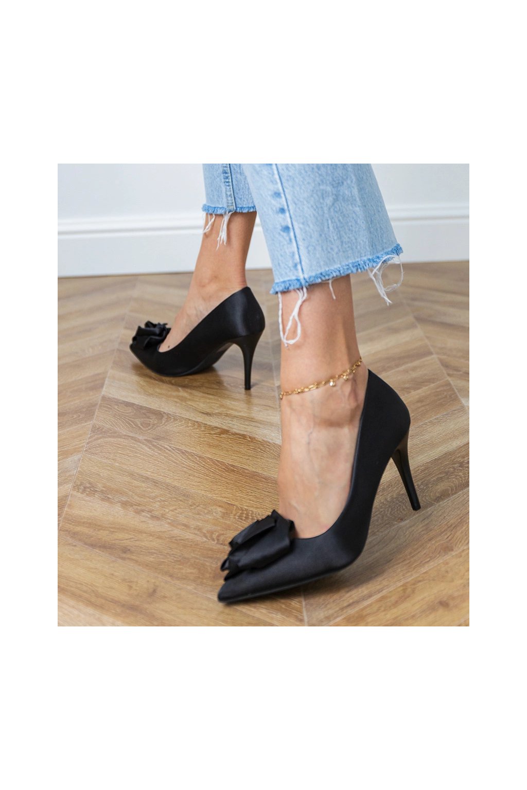 Čierne dámske ihlové lodičky z tkaniny s rovnou podrážkou, kód produktu FB-302 Black
