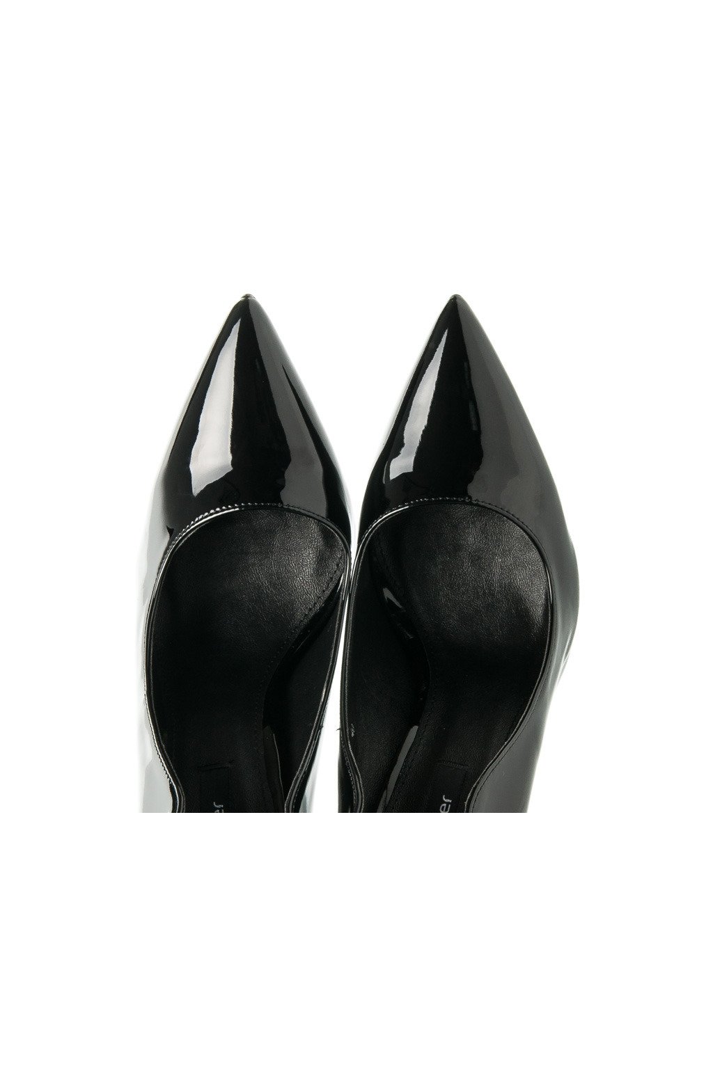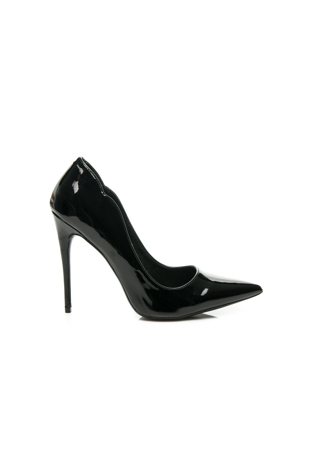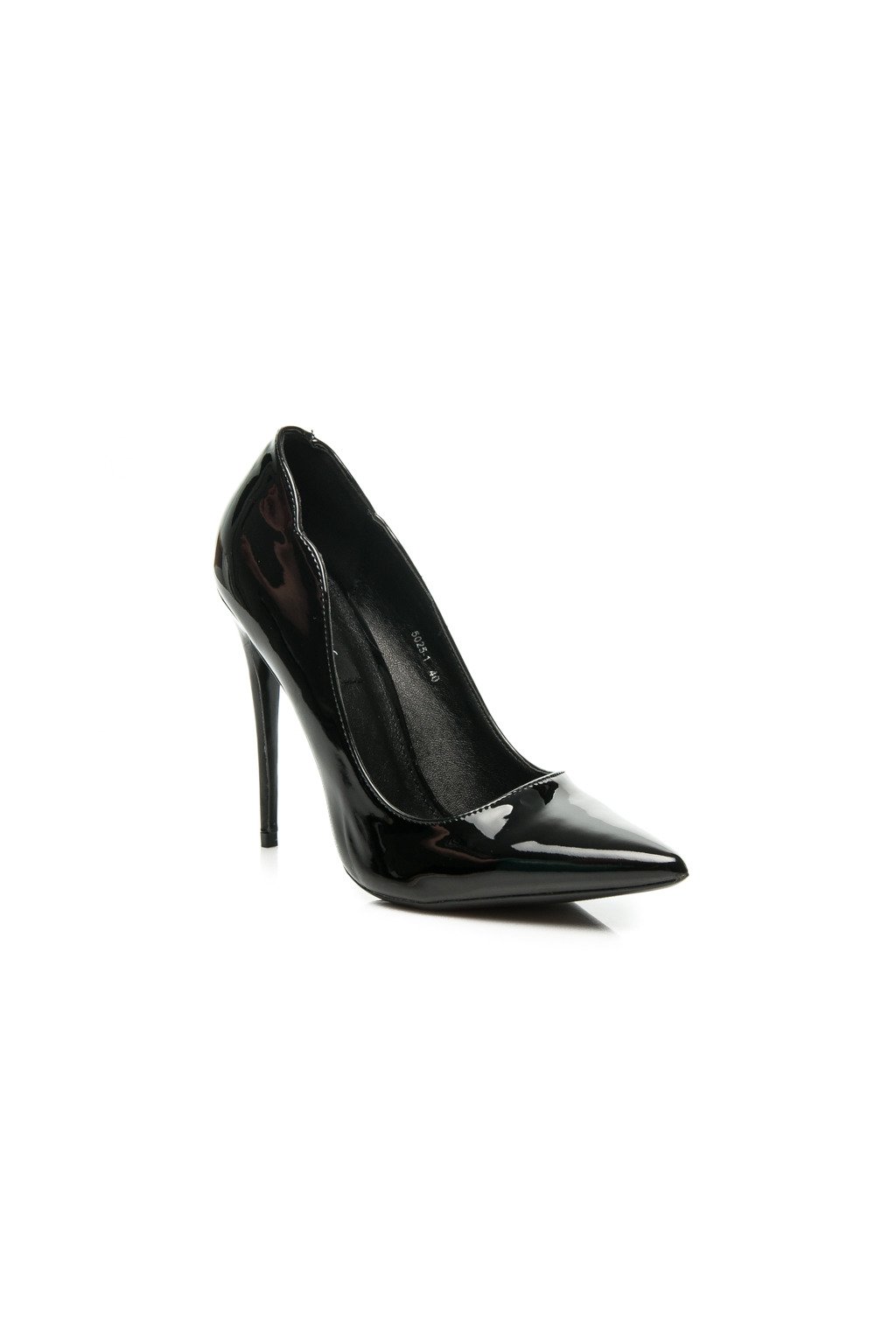 Čierne dámske lakované lodičky na rovnej podrážke, kód produktu NJSK 5025-1B