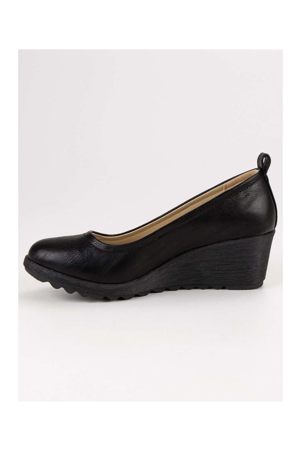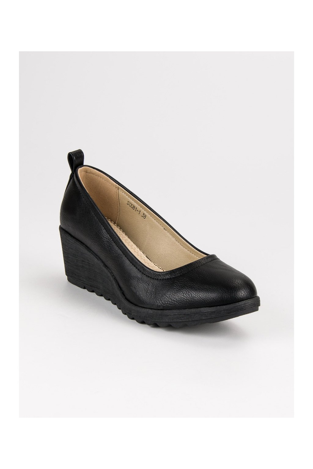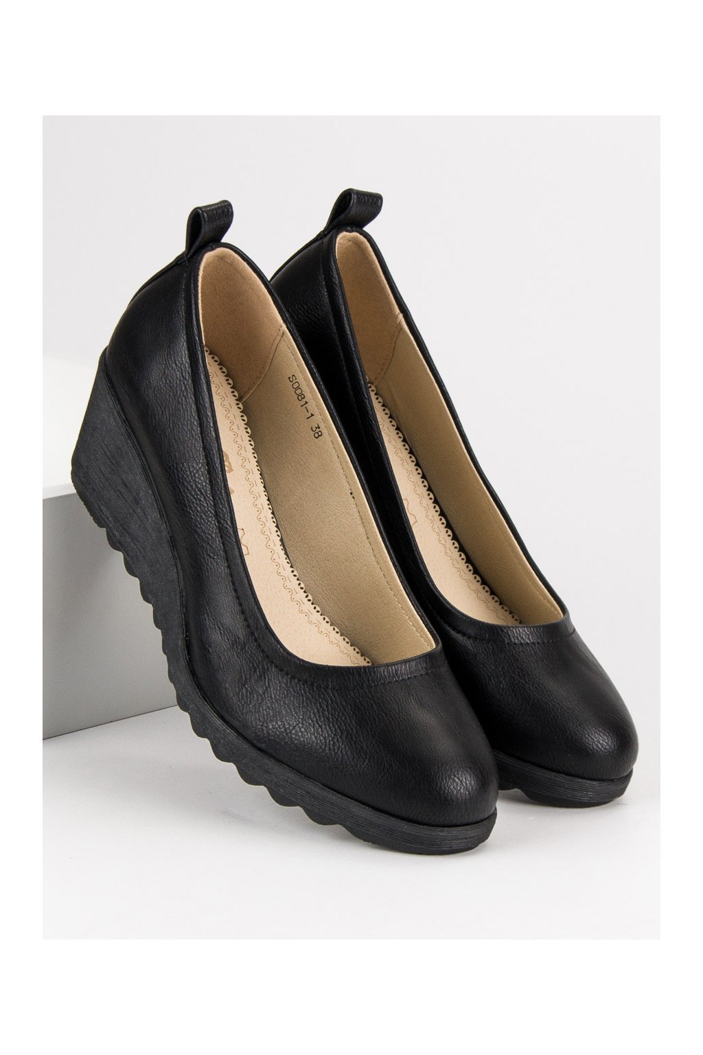 Čierne dámske lodičky s plnou špičkou a zastavanou pätou na 6cm podpätku s 2cm platformou, z eko kože, kód produktu J.Star S0081B