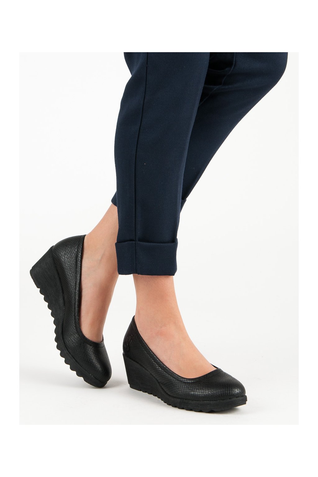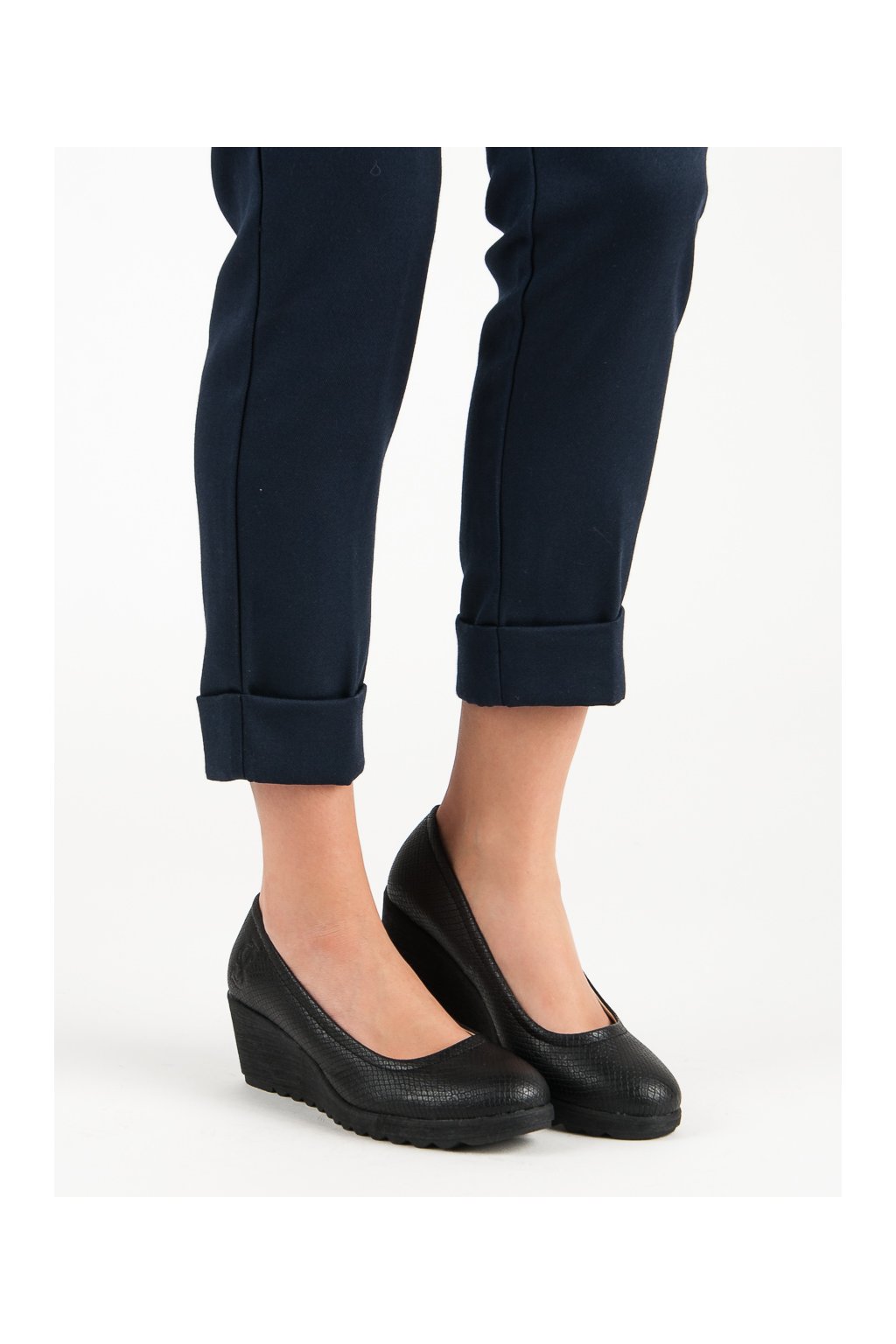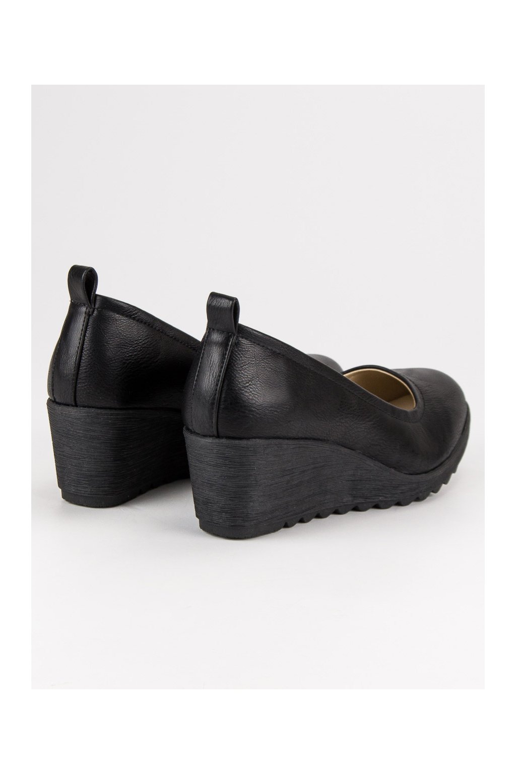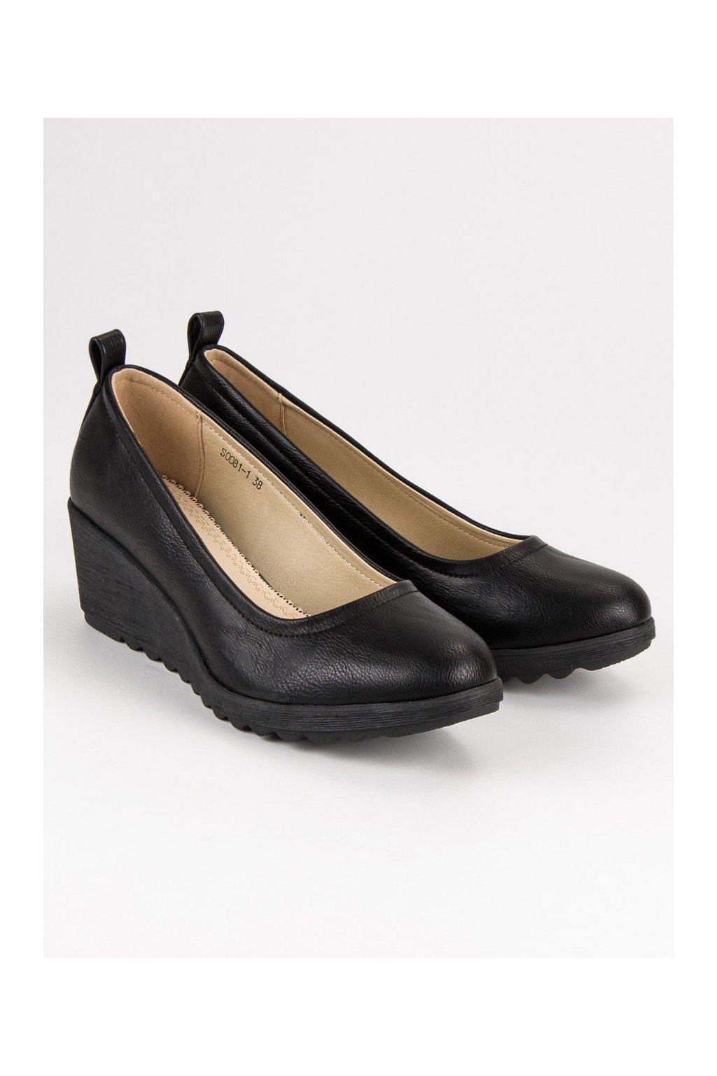 Čierne dámske lodičky s plnou špičkou a zastavanou pätou na 6cm podpätku s 2cm platformou, z eko kože, kód produktu J.Star S0081B