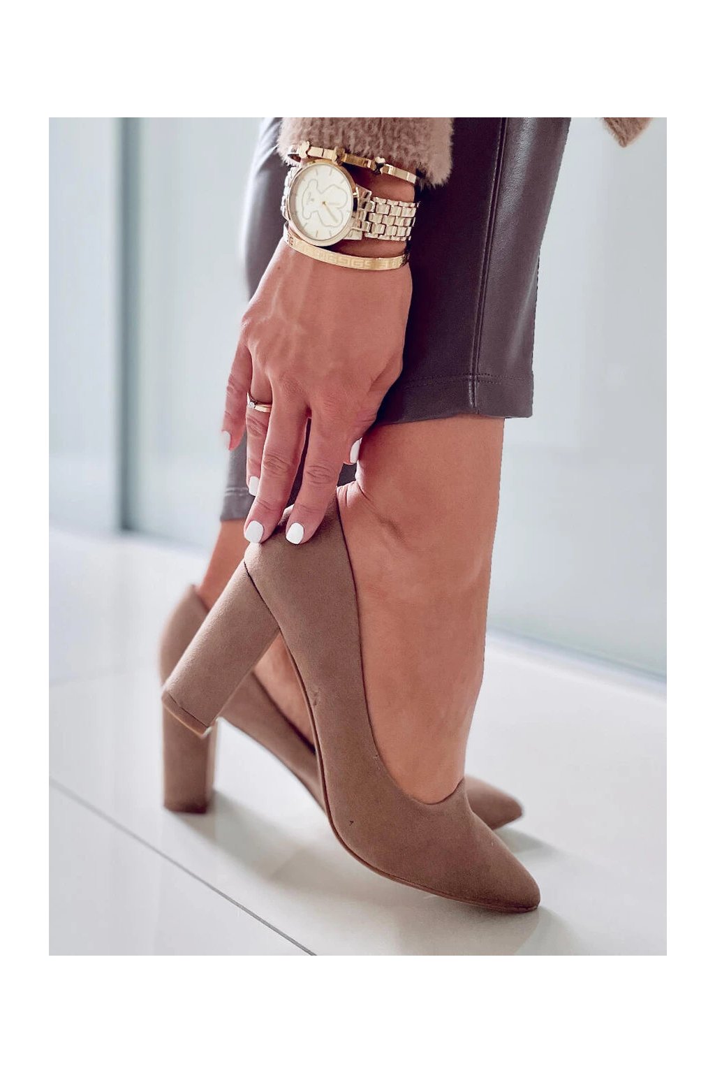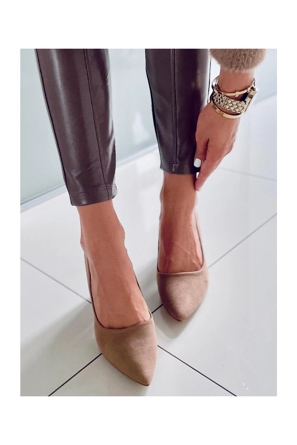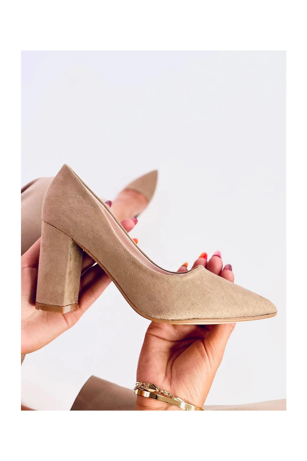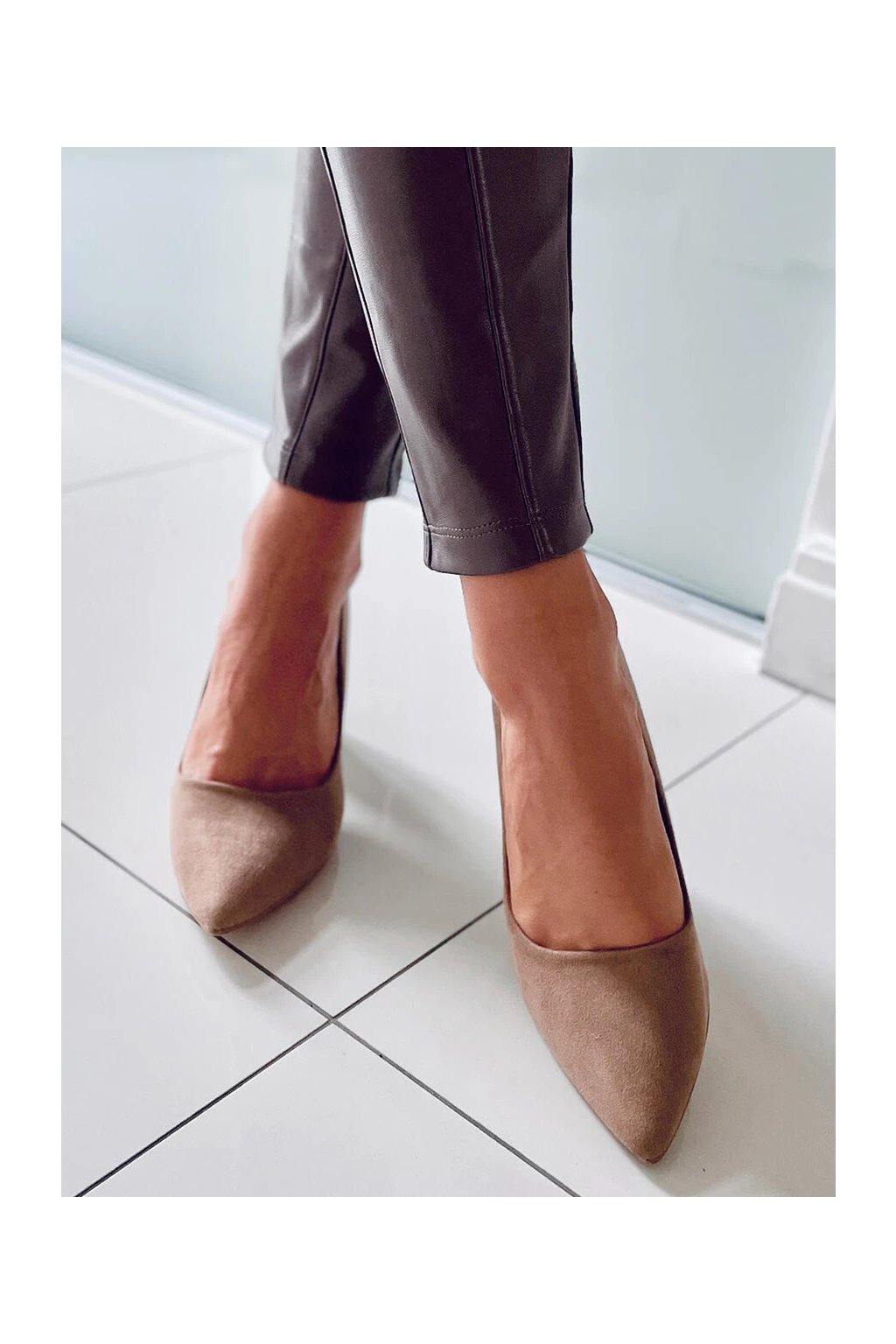 Dámske béžové lodičky z eko semišu na 9 cm podpätku, špicatý nos, kód NF-47P