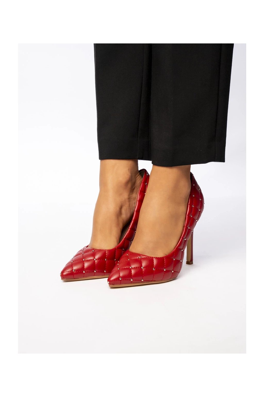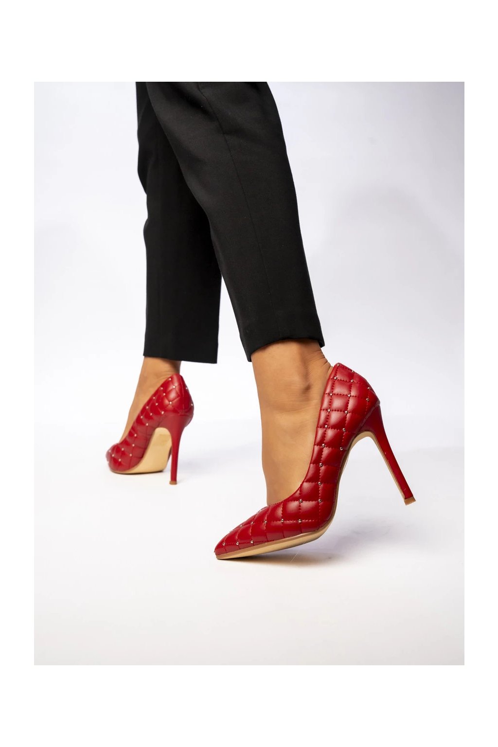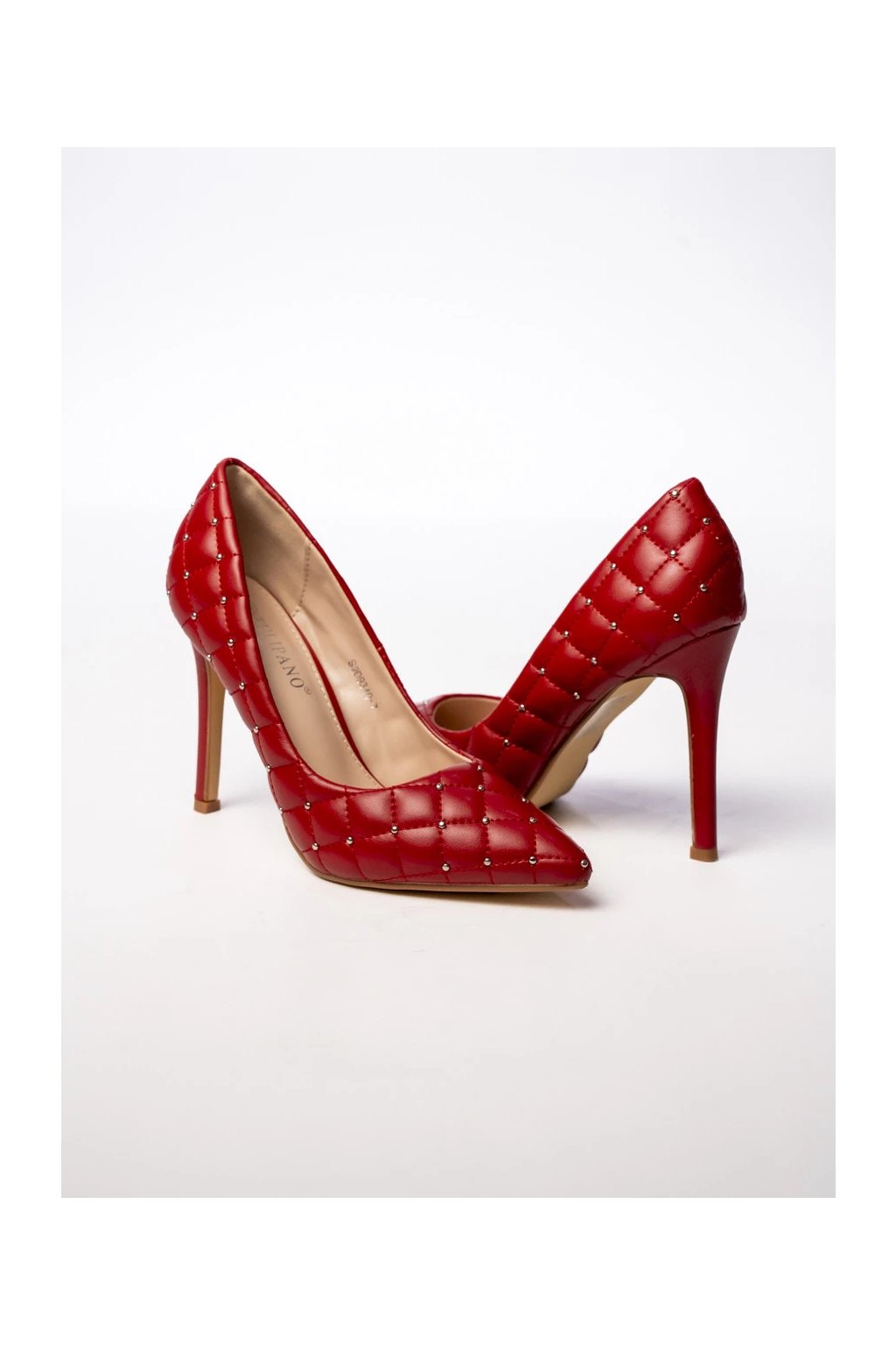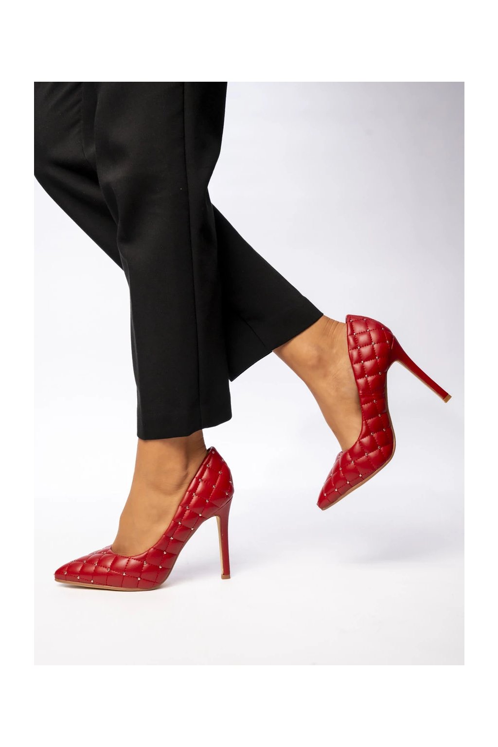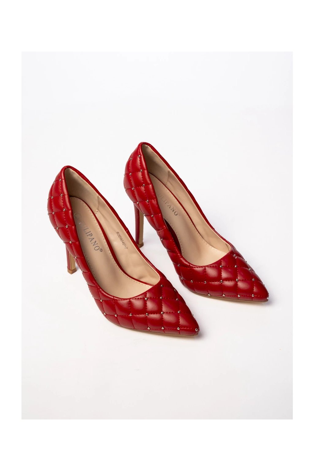 Červené dámske ihličkové lodičky z eko kože, špicatá špička, S2D9340-7