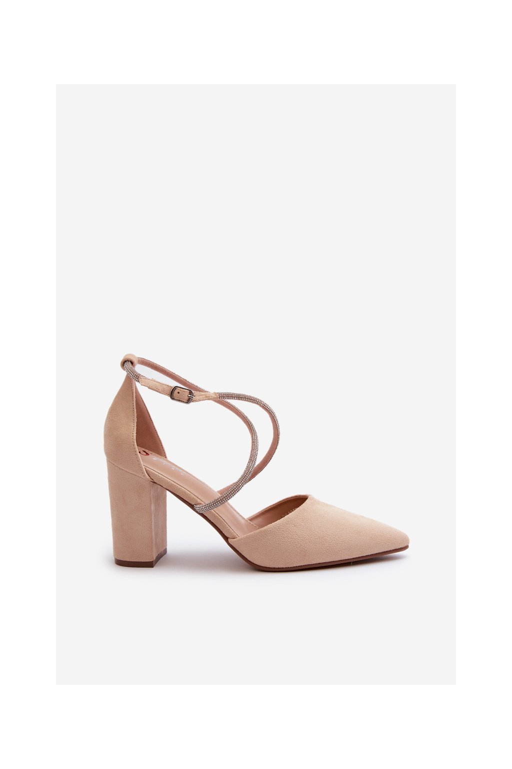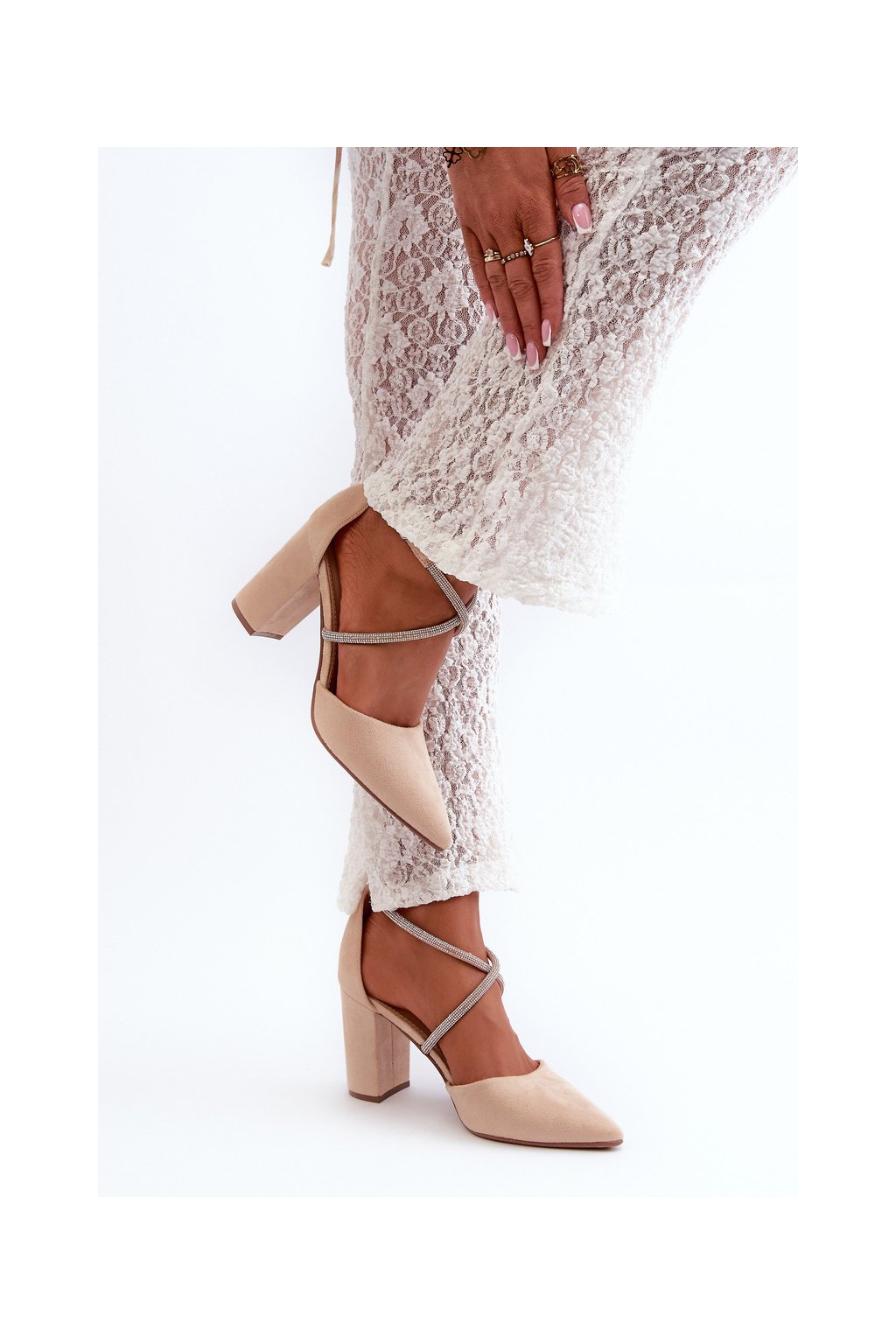 Dámske béžové lodičky z eko semišu s vysokým stĺpovým podpätkom, kód produktu QA205P BEIGE