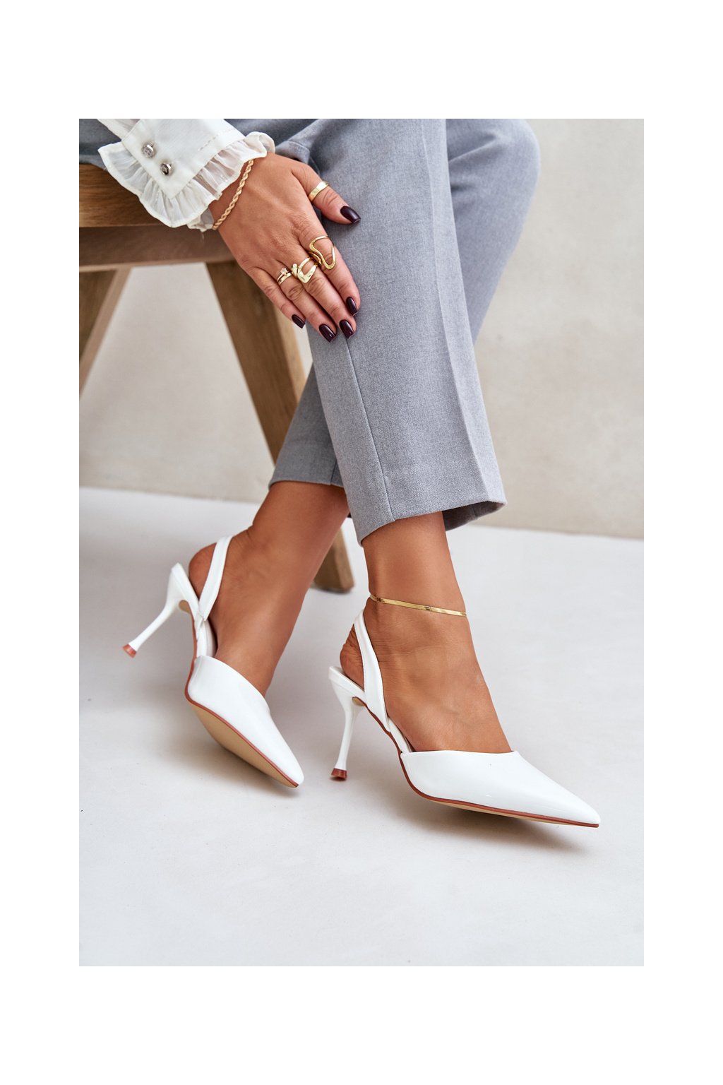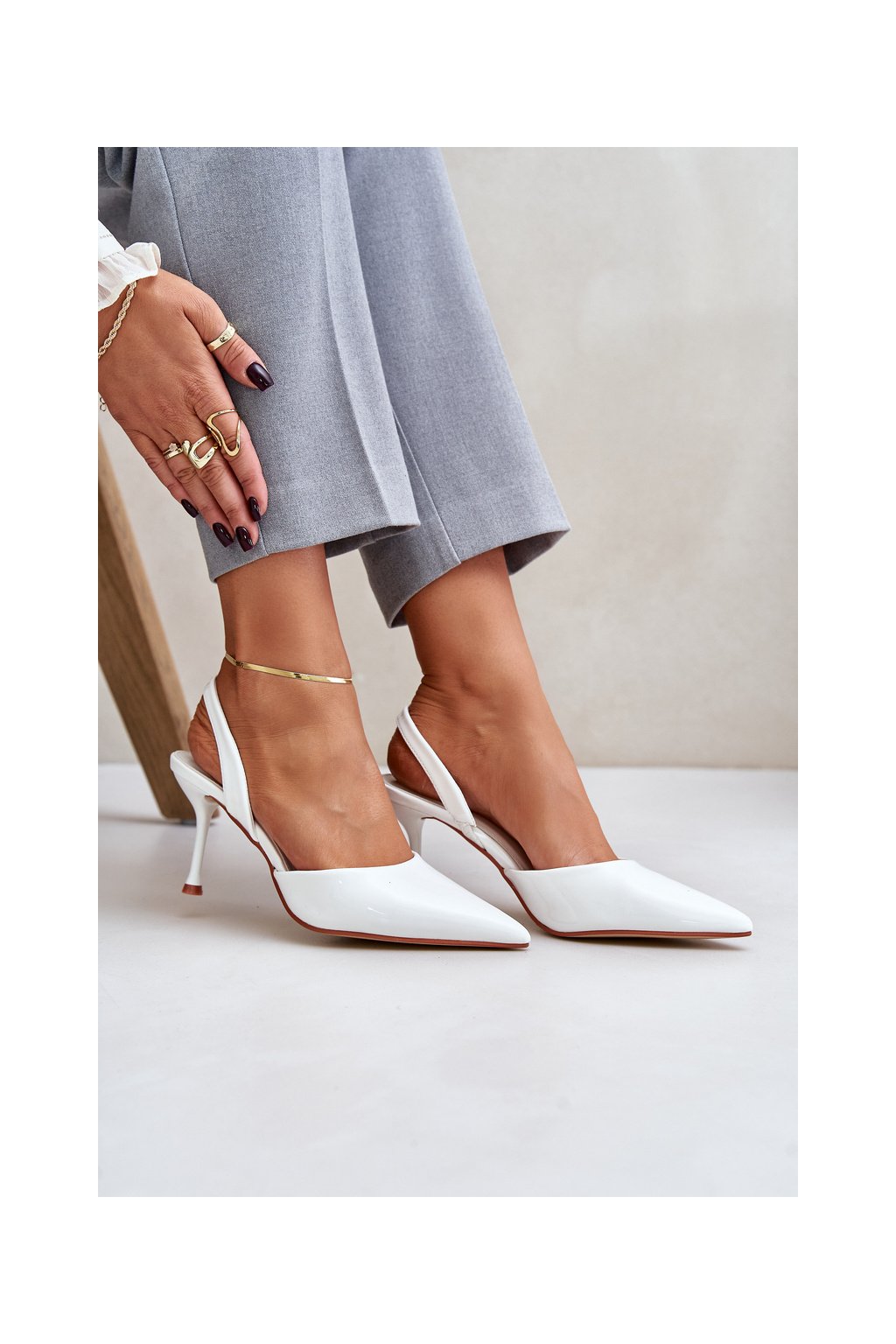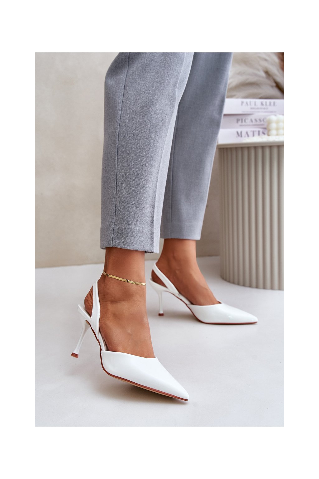 Biele dámske lodičky s ihlovým podpätkom z eko kože, kód produktu SQC-128 WHITE