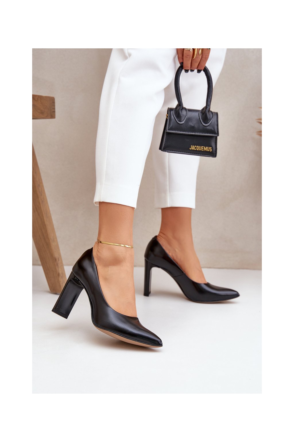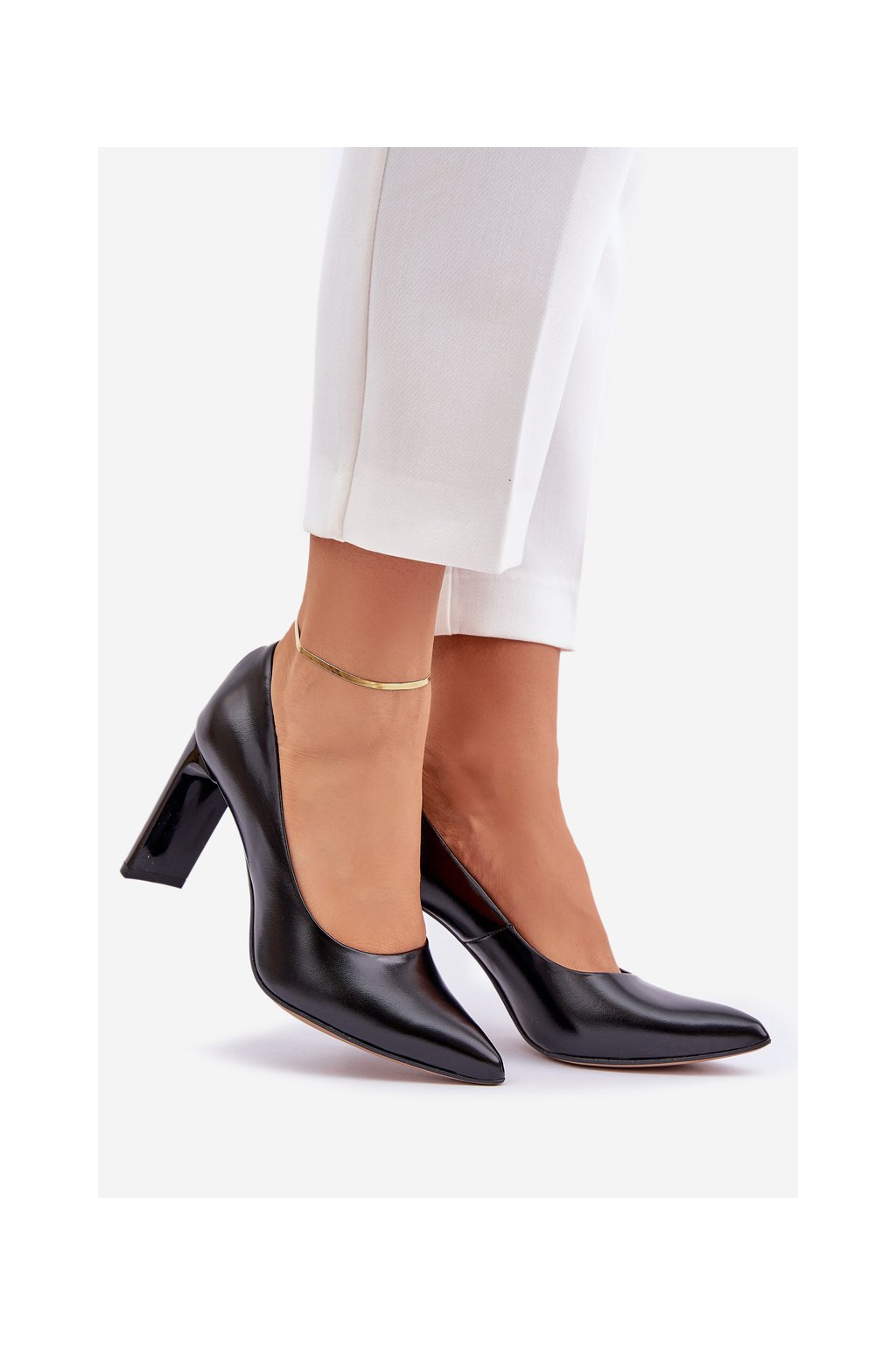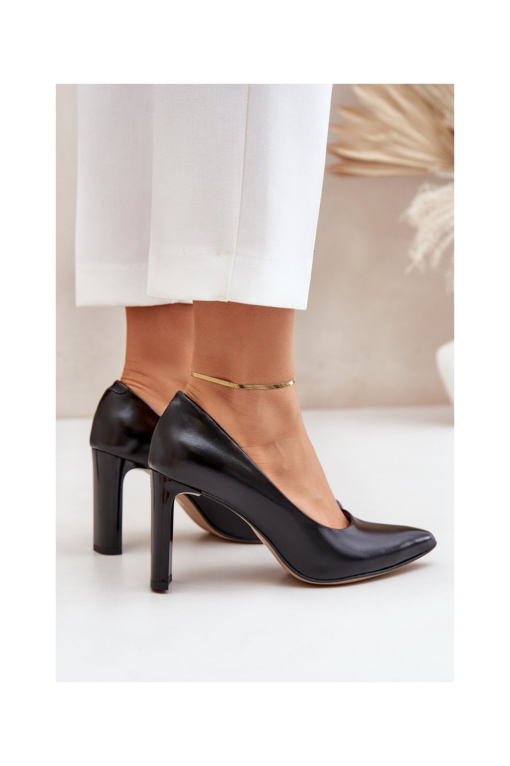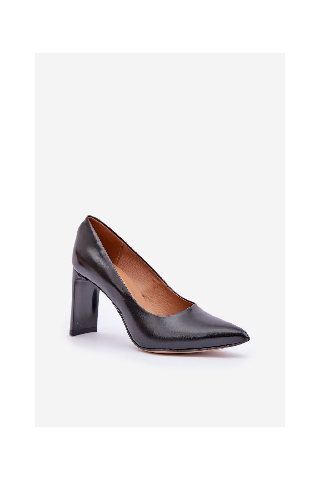 Dámske čierne lodičky z prírodnej kože na stľpovom podpätku, kód 2659/2043 CZARNE LICO