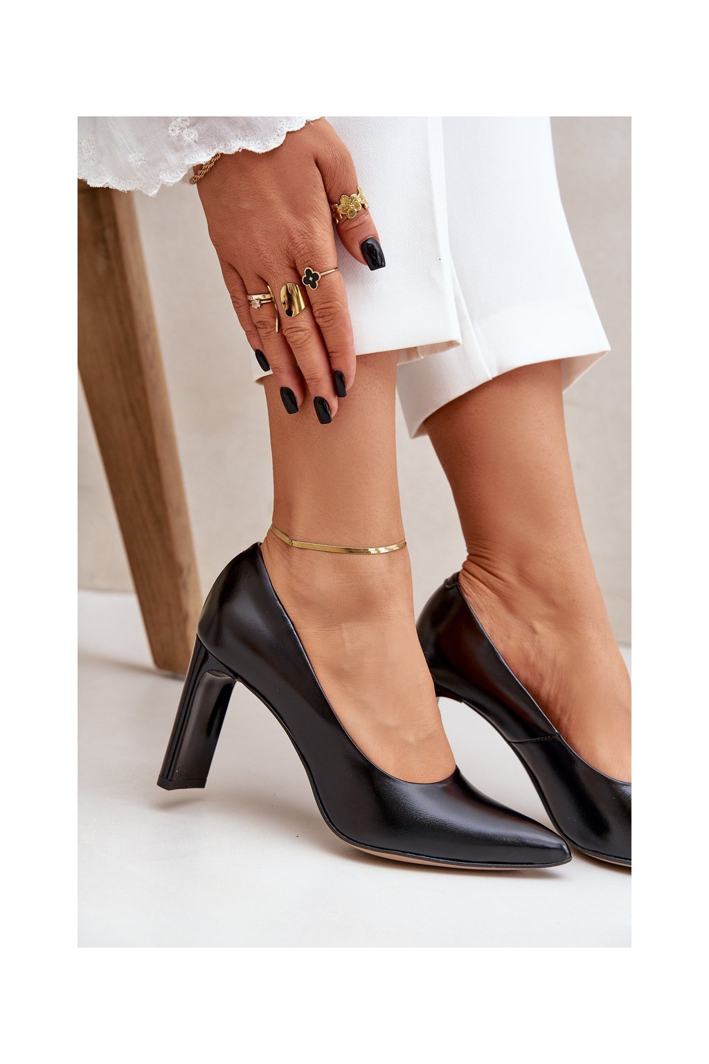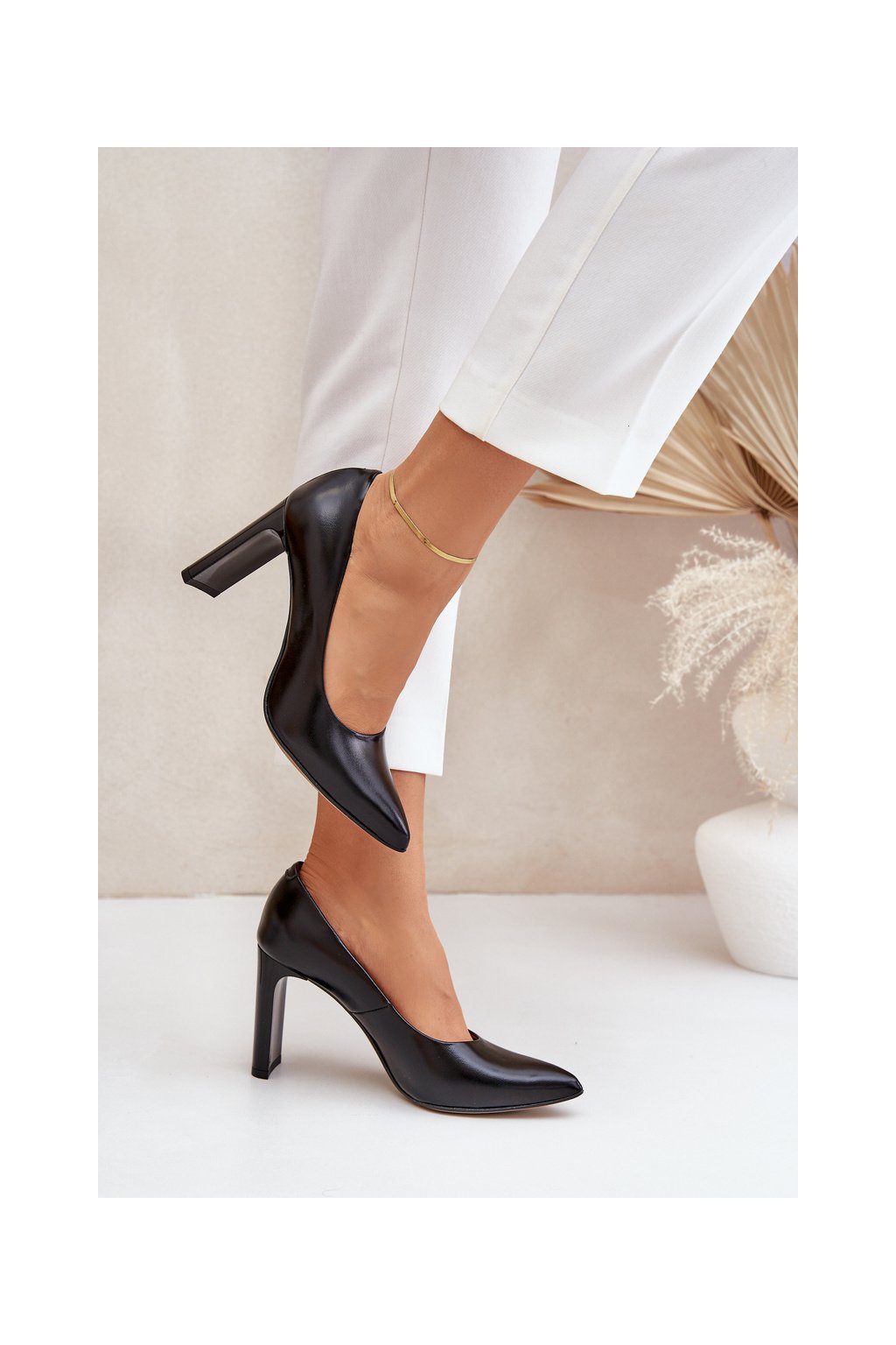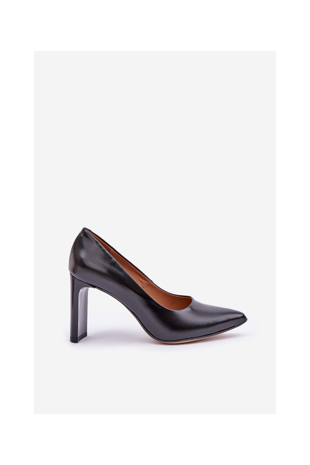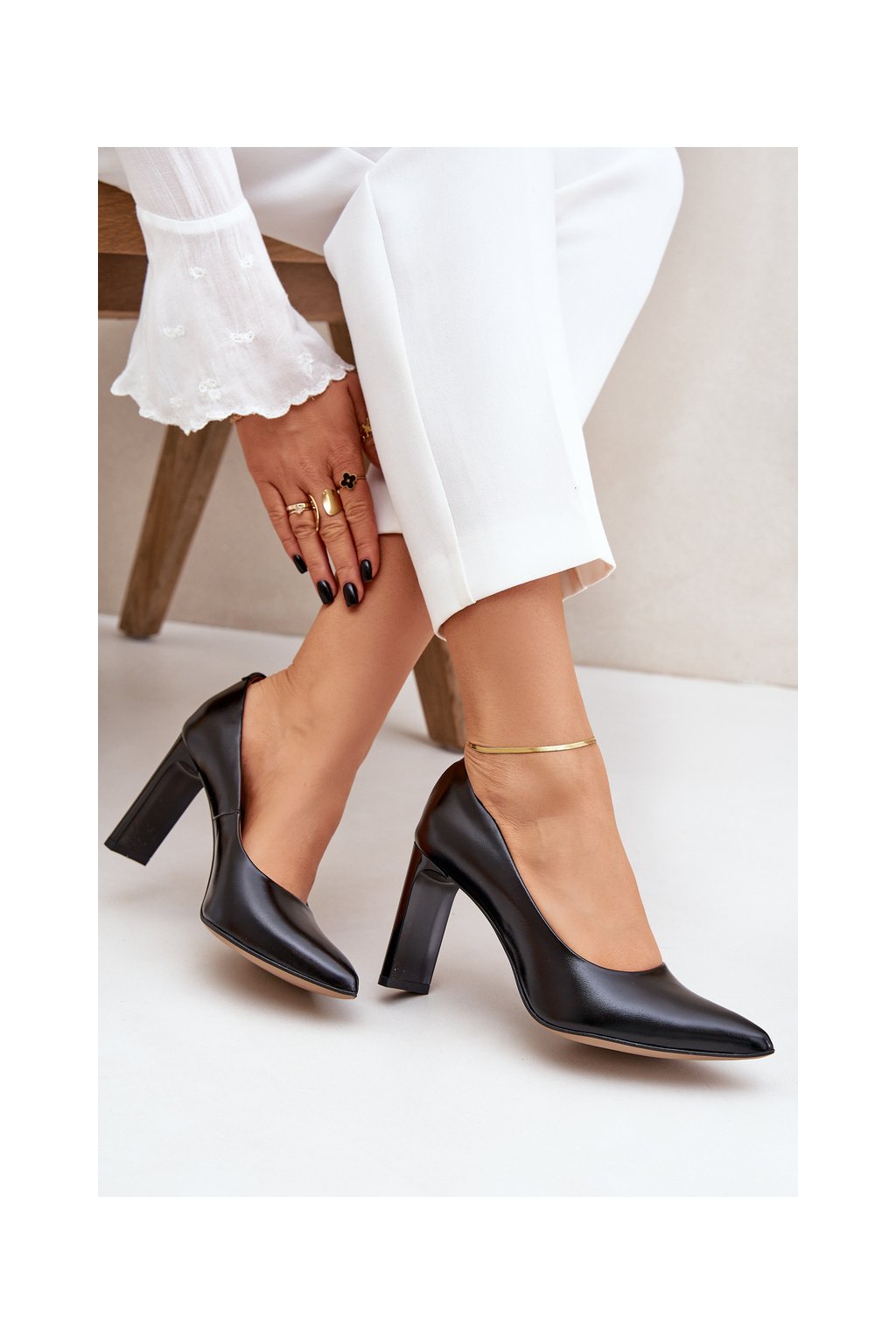 Dámske čierne lodičky z prírodnej kože na stľpovom podpätku, kód 2659/2043 CZARNE LICO