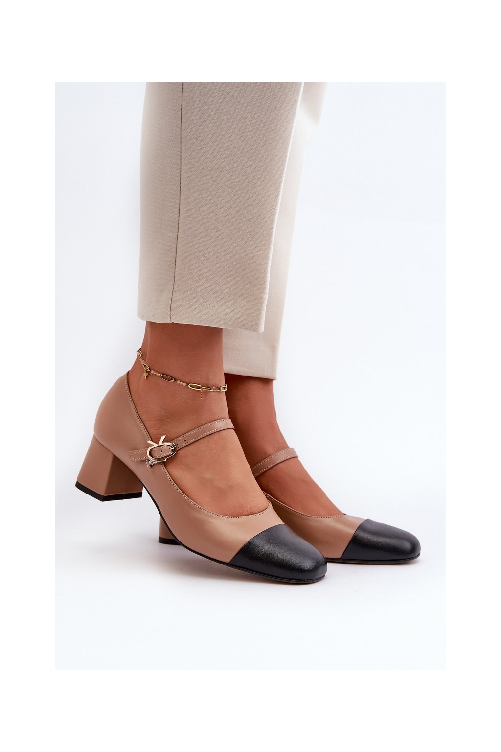 Hnedé dámske kožené lodičky na stĺpovom podpätku Laura Messi, kód produktu 2846/100-205
