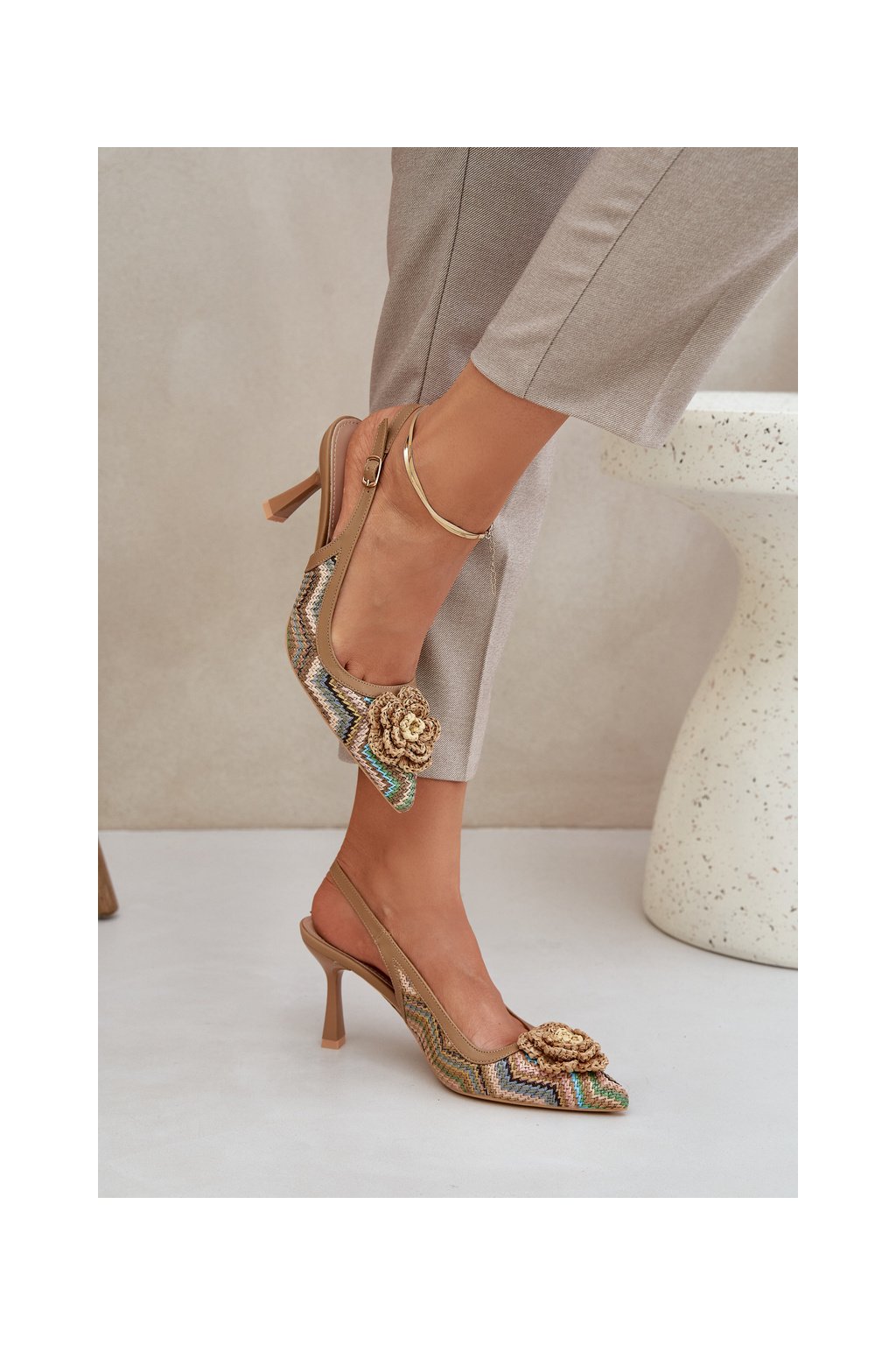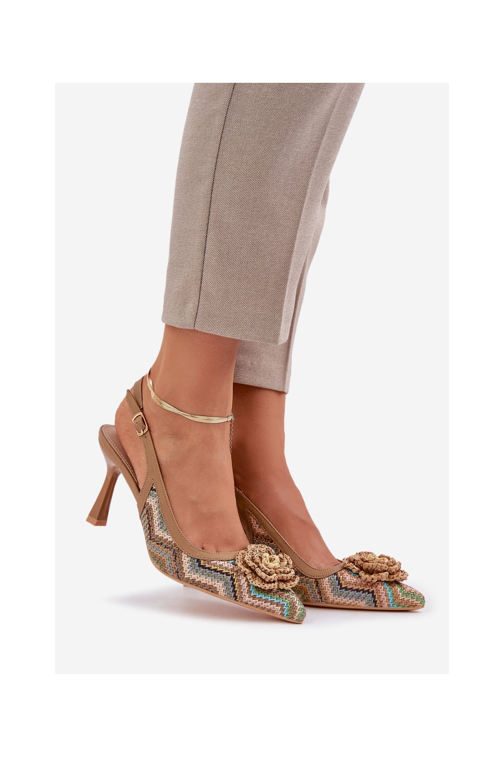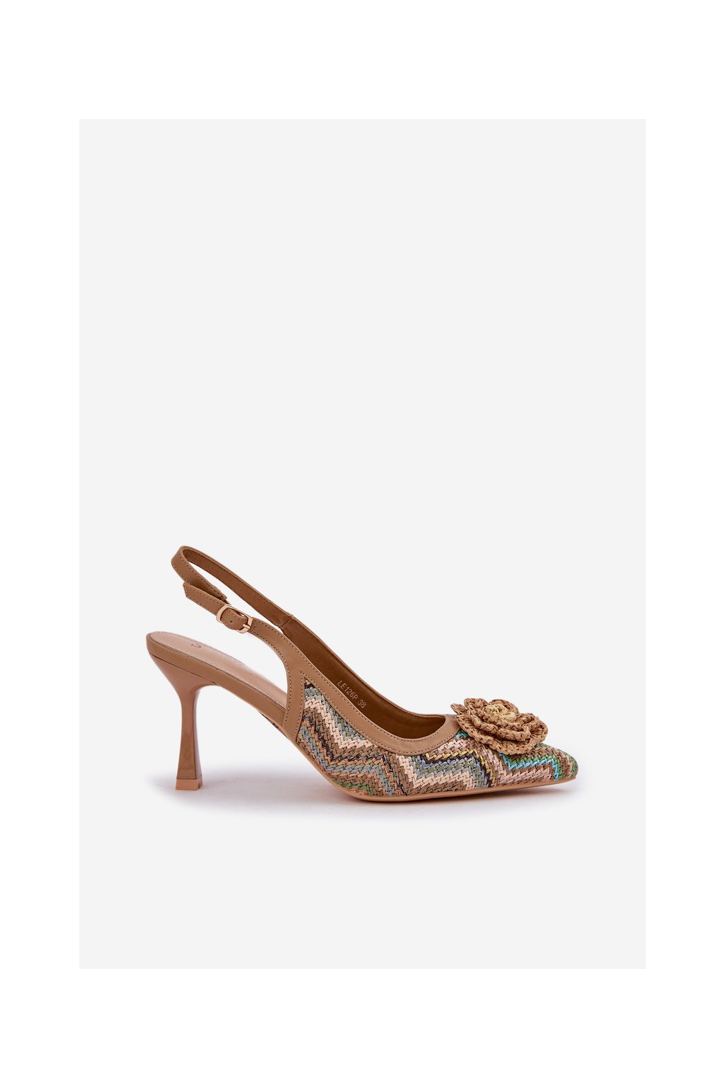 Dámske hnedé lodičky na ihloвом podpätku z eko kože LE126P CAMEL