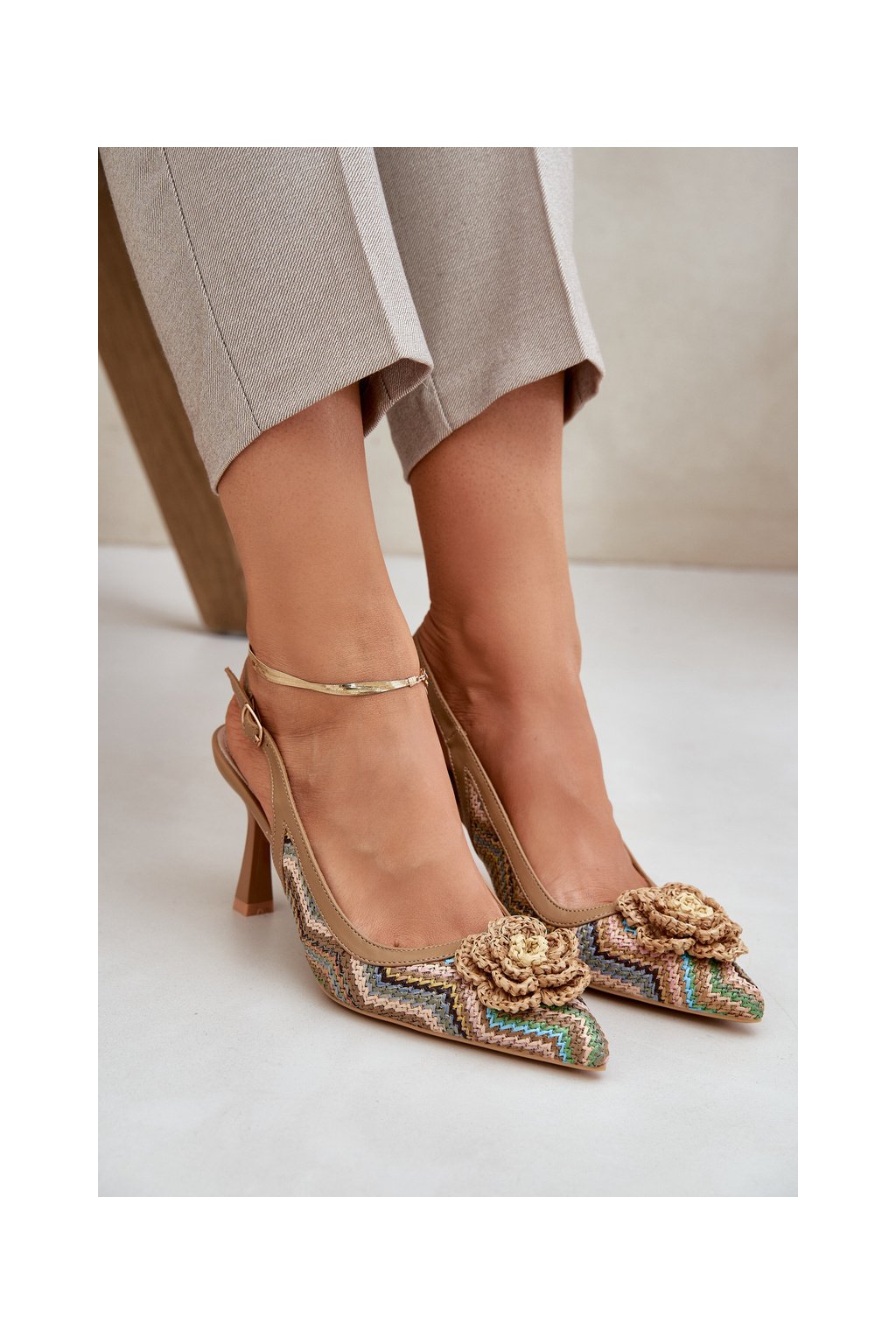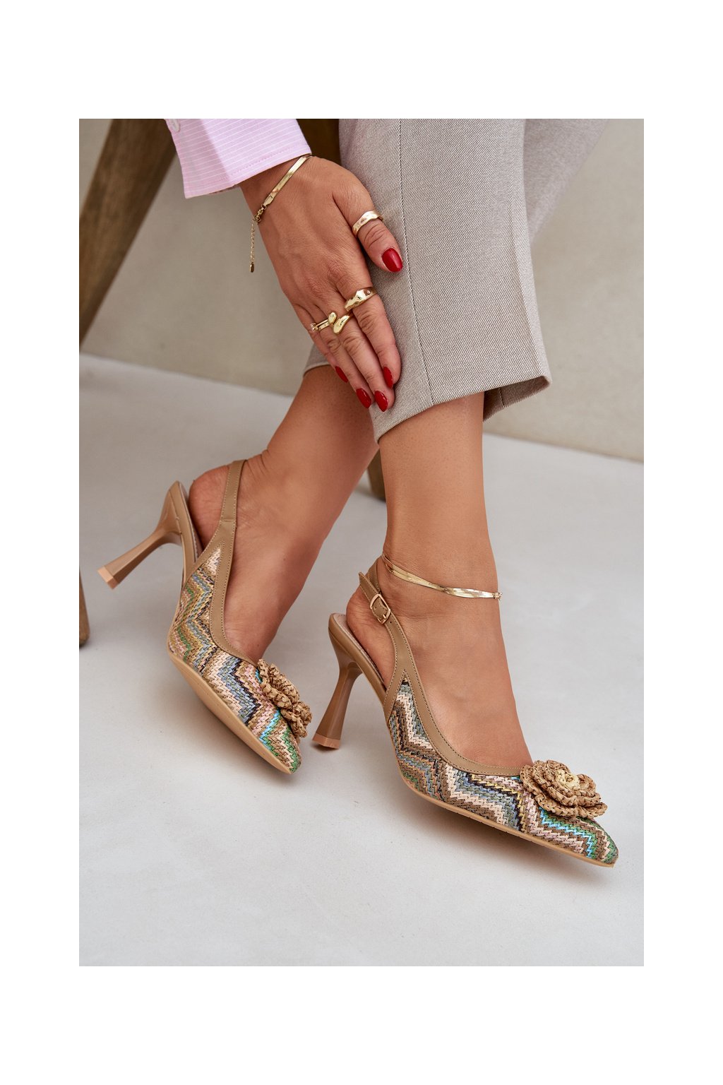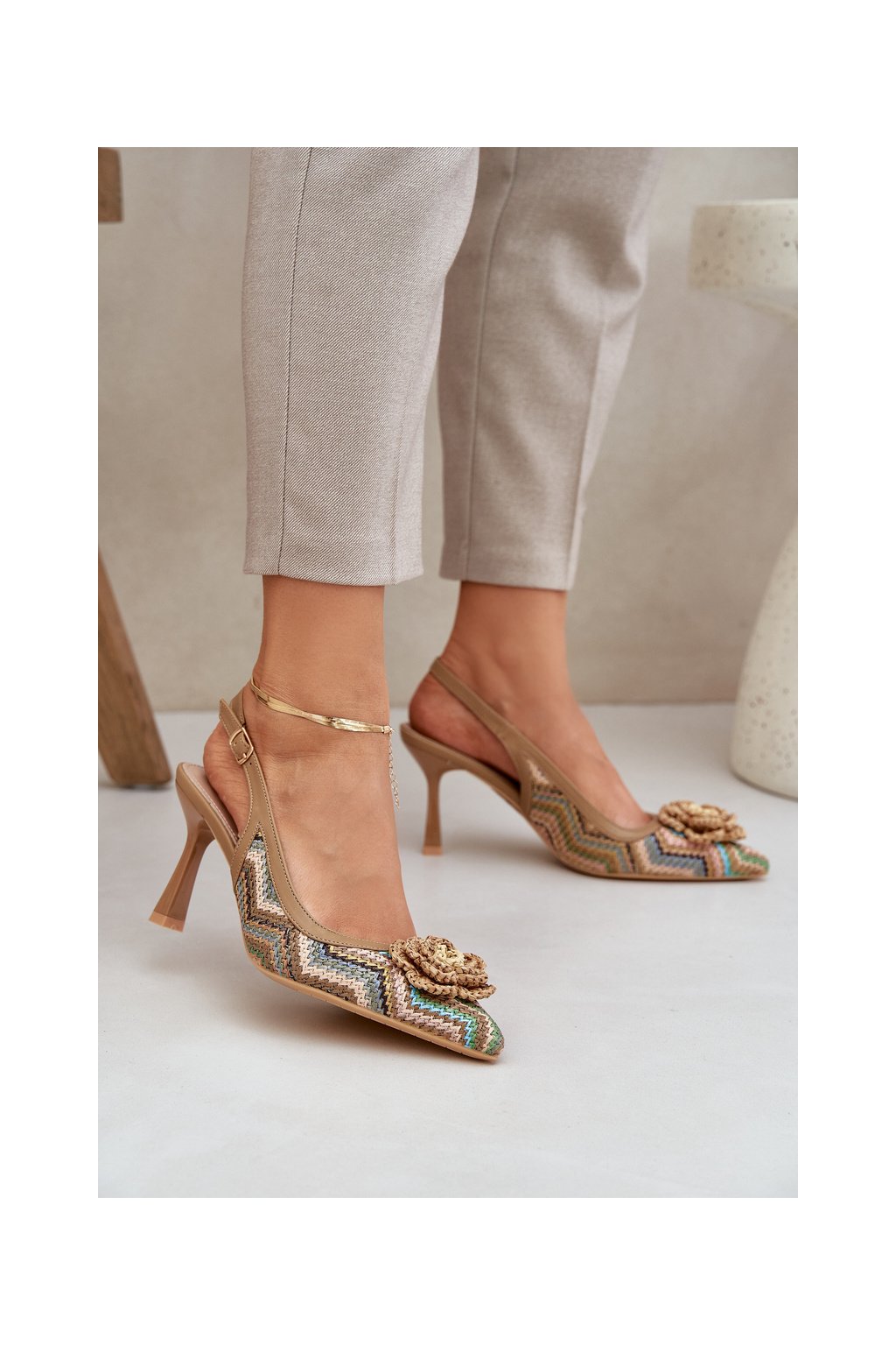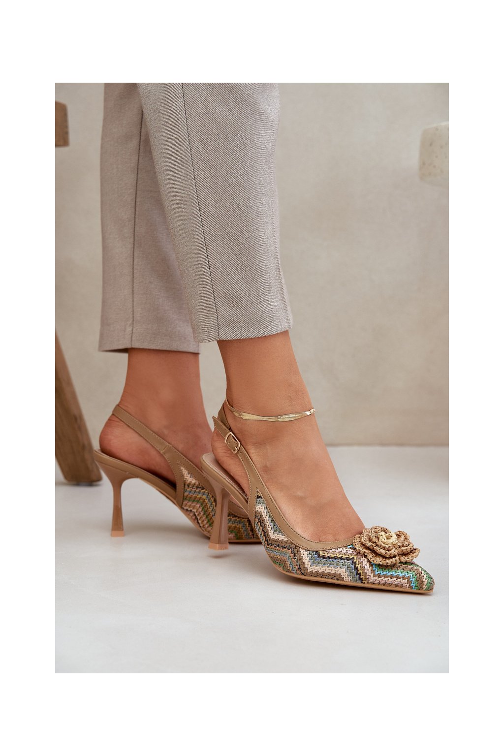Dámske hnedé lodičky na ihloвом podpätku z eko kože LE126P CAMEL