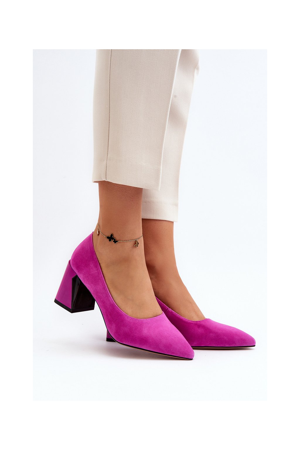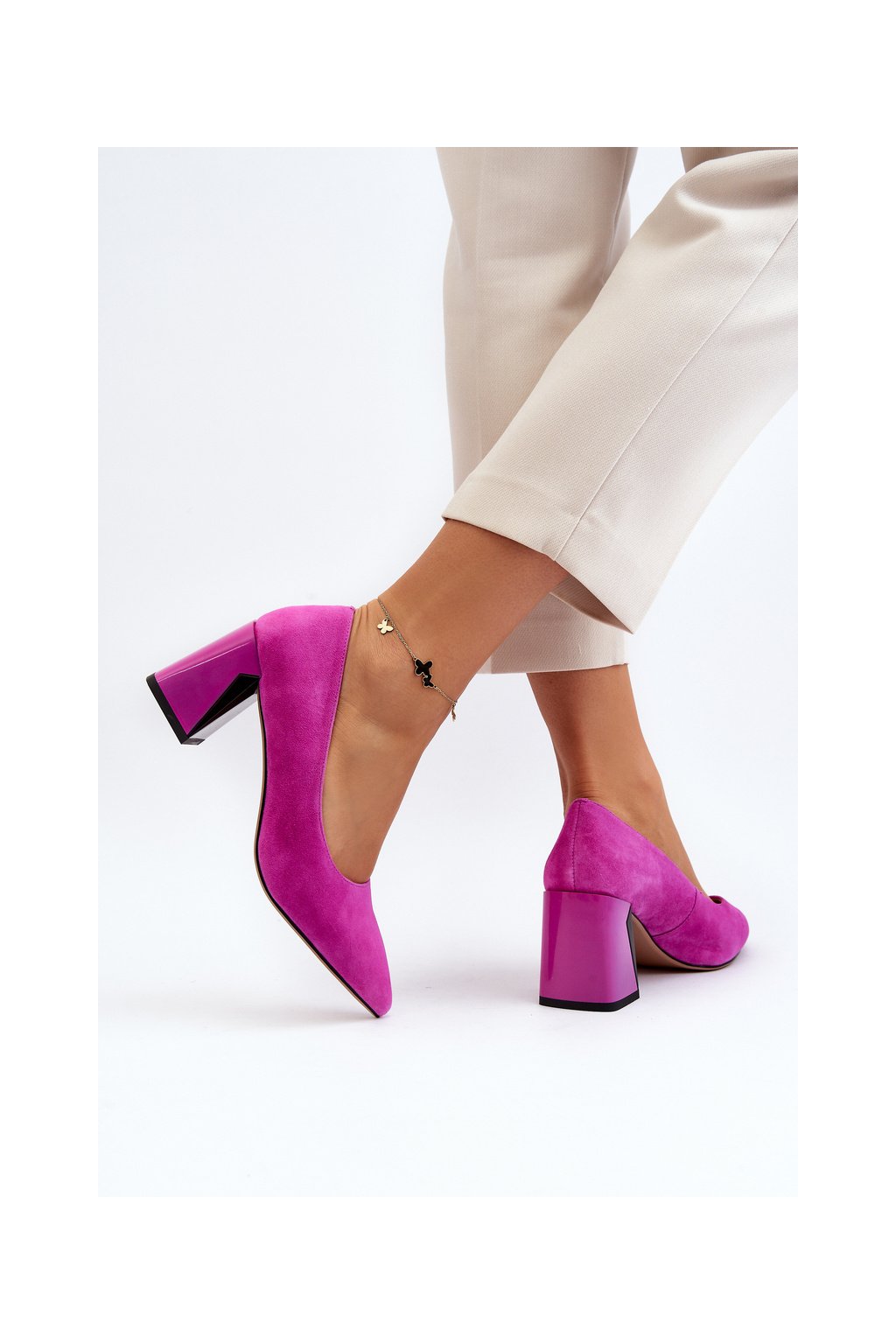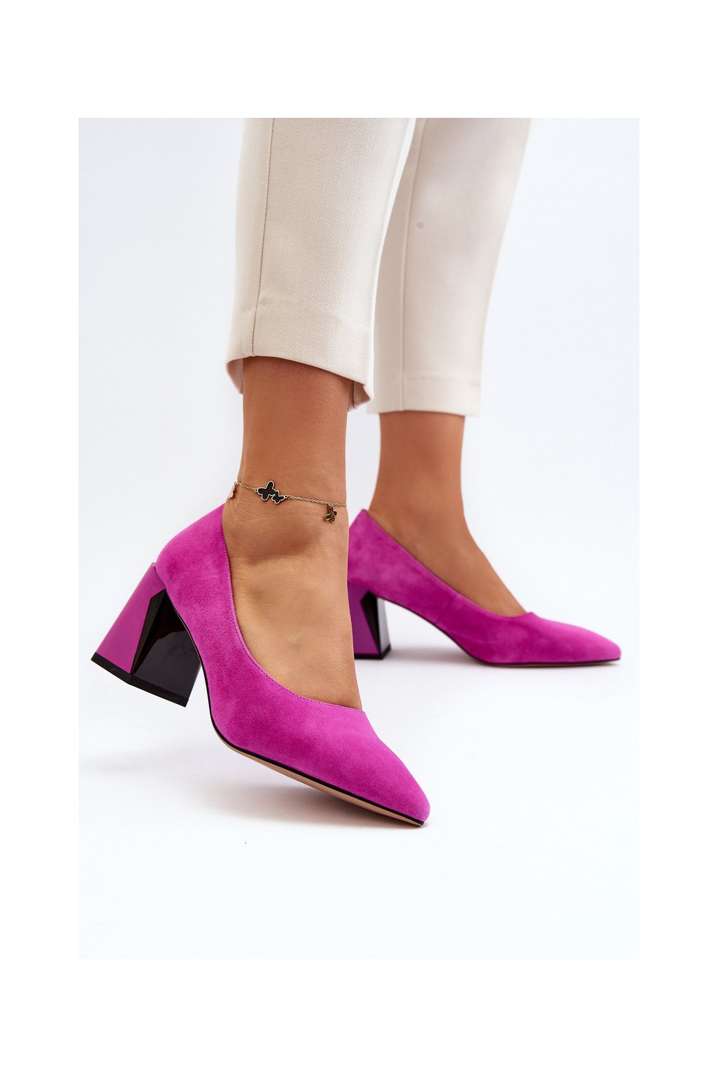 Sametové lodičky na podpätku fuksiová alessyndra / 66602 FU