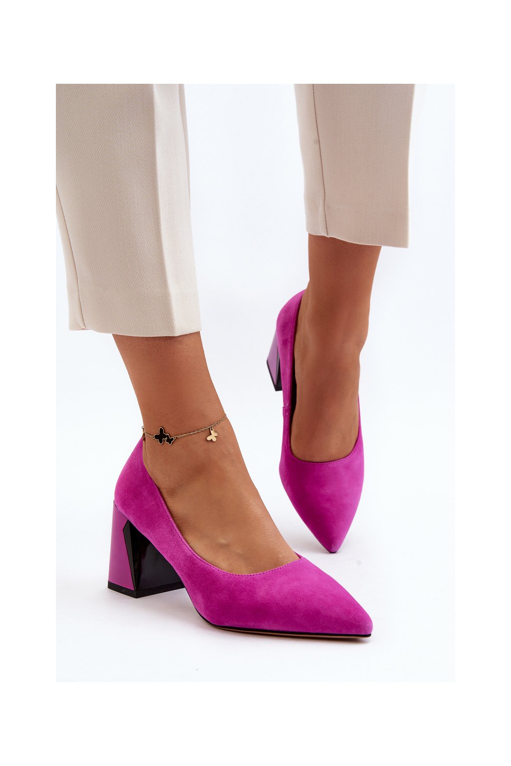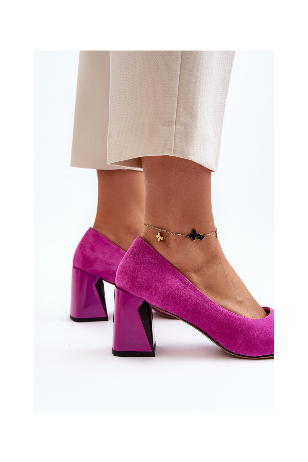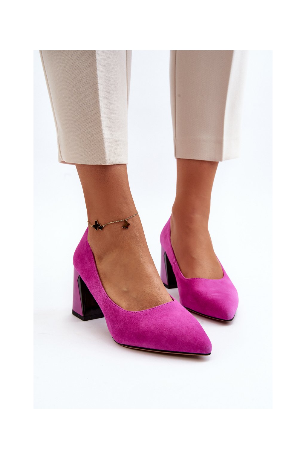 Sametové lodičky na podpätku fuksiová alessyndra / 66602 FU