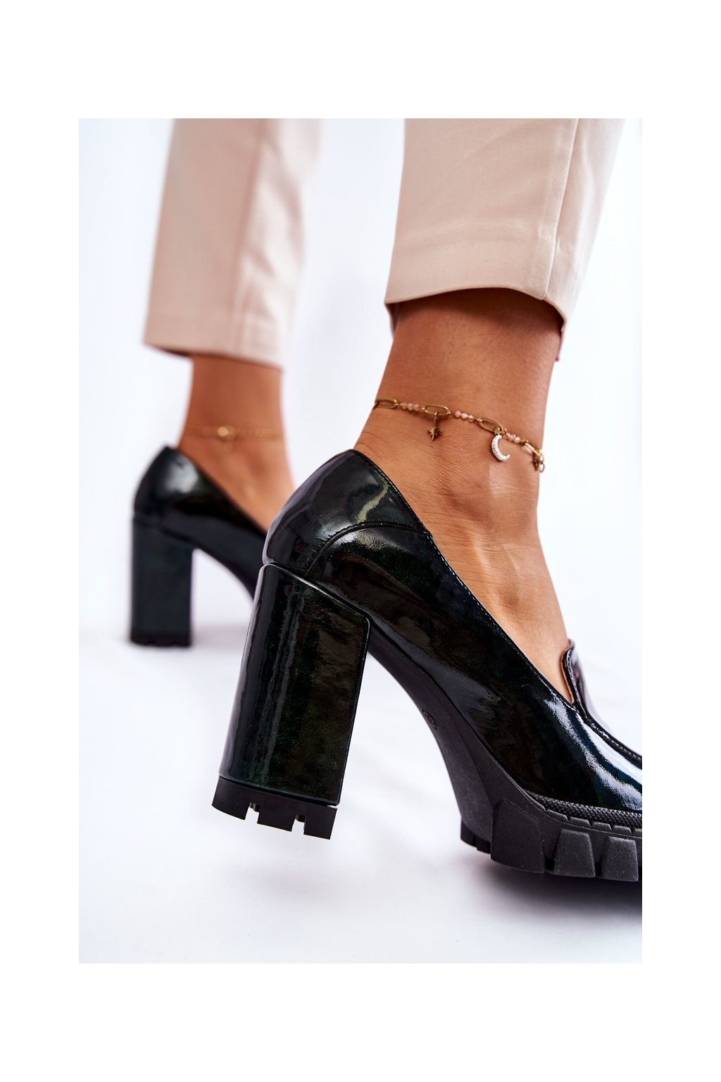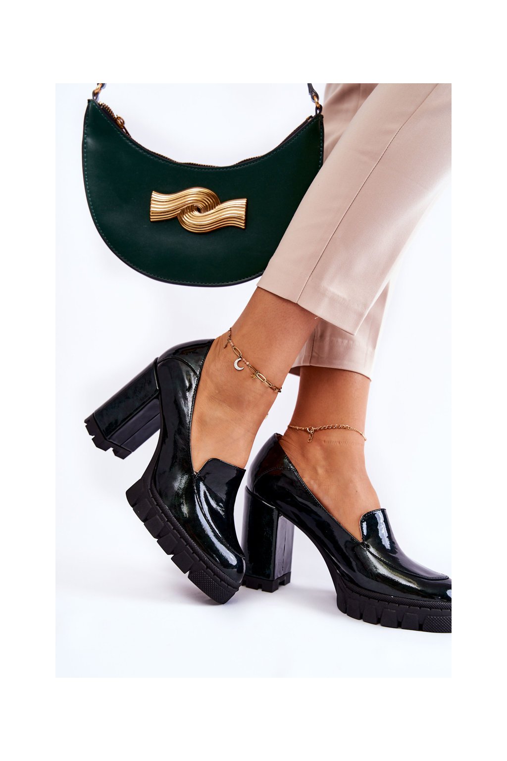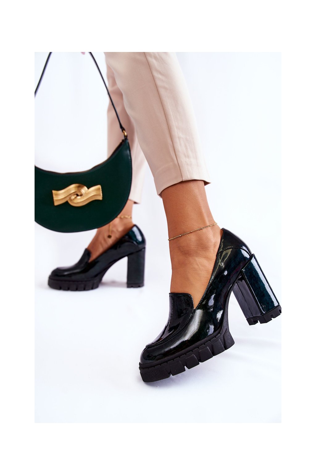 Módní lakované lodičky na masivní platformě zelené Margott