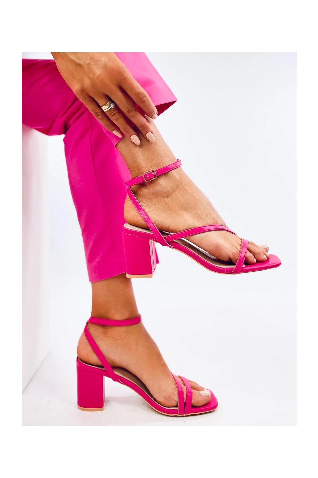 Dámske ružové lodičky z eko kože na 6-9 cm podpätku s otvorenou špičkou, elegantný štýl, kód G198P