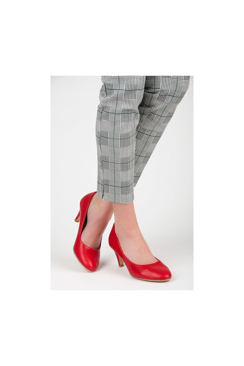 Červené dámske elegantné lodičky na kolíkovom podpätku s eko kožou, kód produktu B7735R