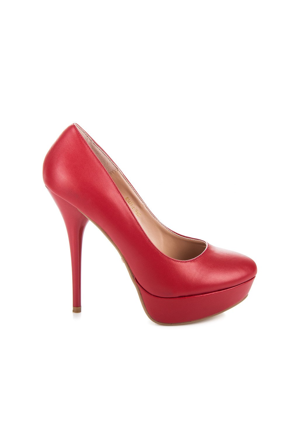 Červené dámske lodičky s plnou špičkou na 12cm opätku a 3cm platformou Albina, s eko koženým materiálom, kód produktu S3477-5R 37
