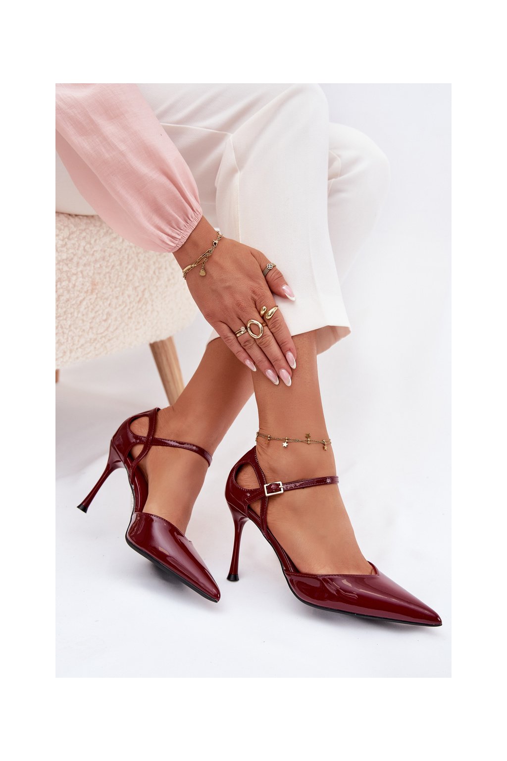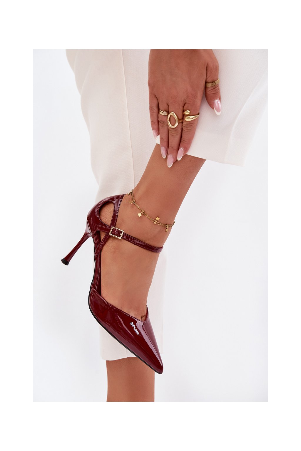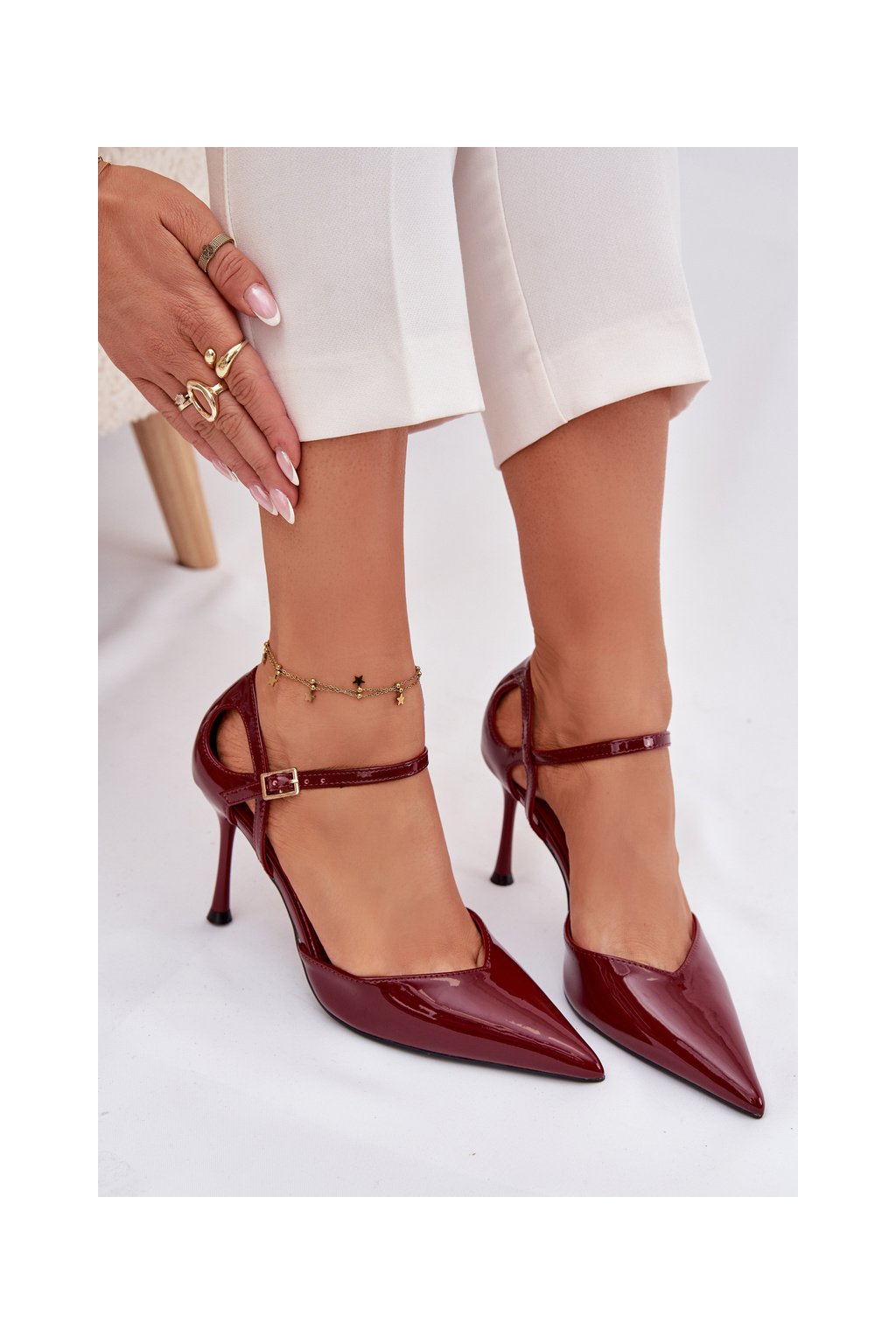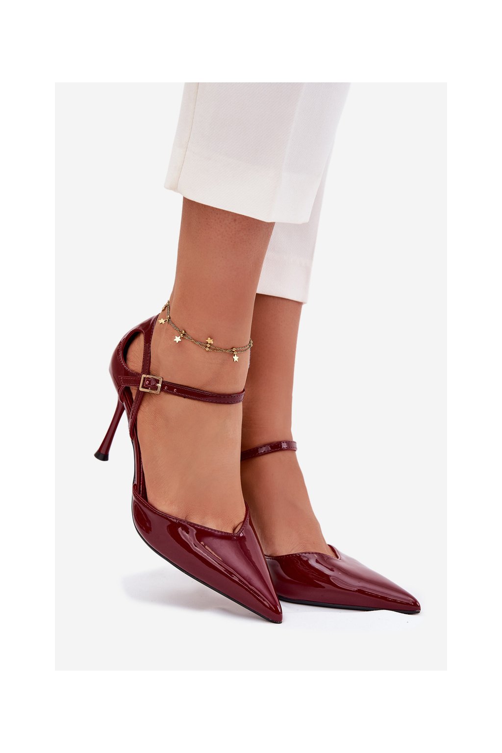 Lakované lodičky s remienkom bordové tarilin / LE150P WINE