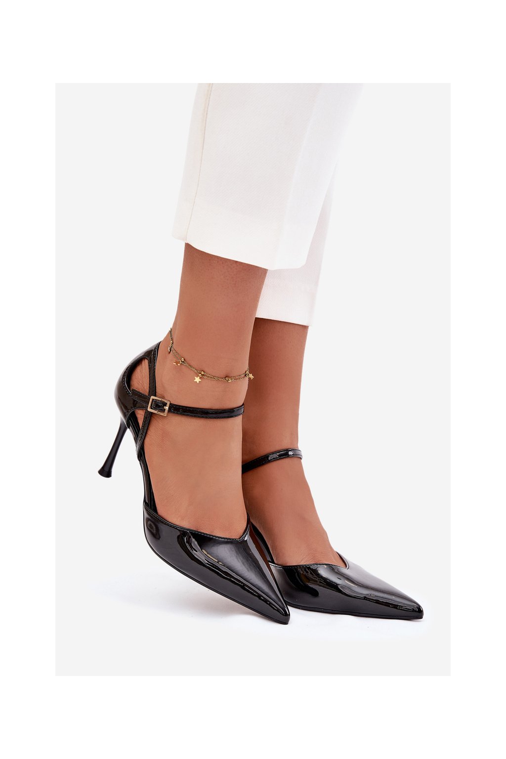 Lakované lodičky s remienkom čierne tarilin / LE150P BLACK