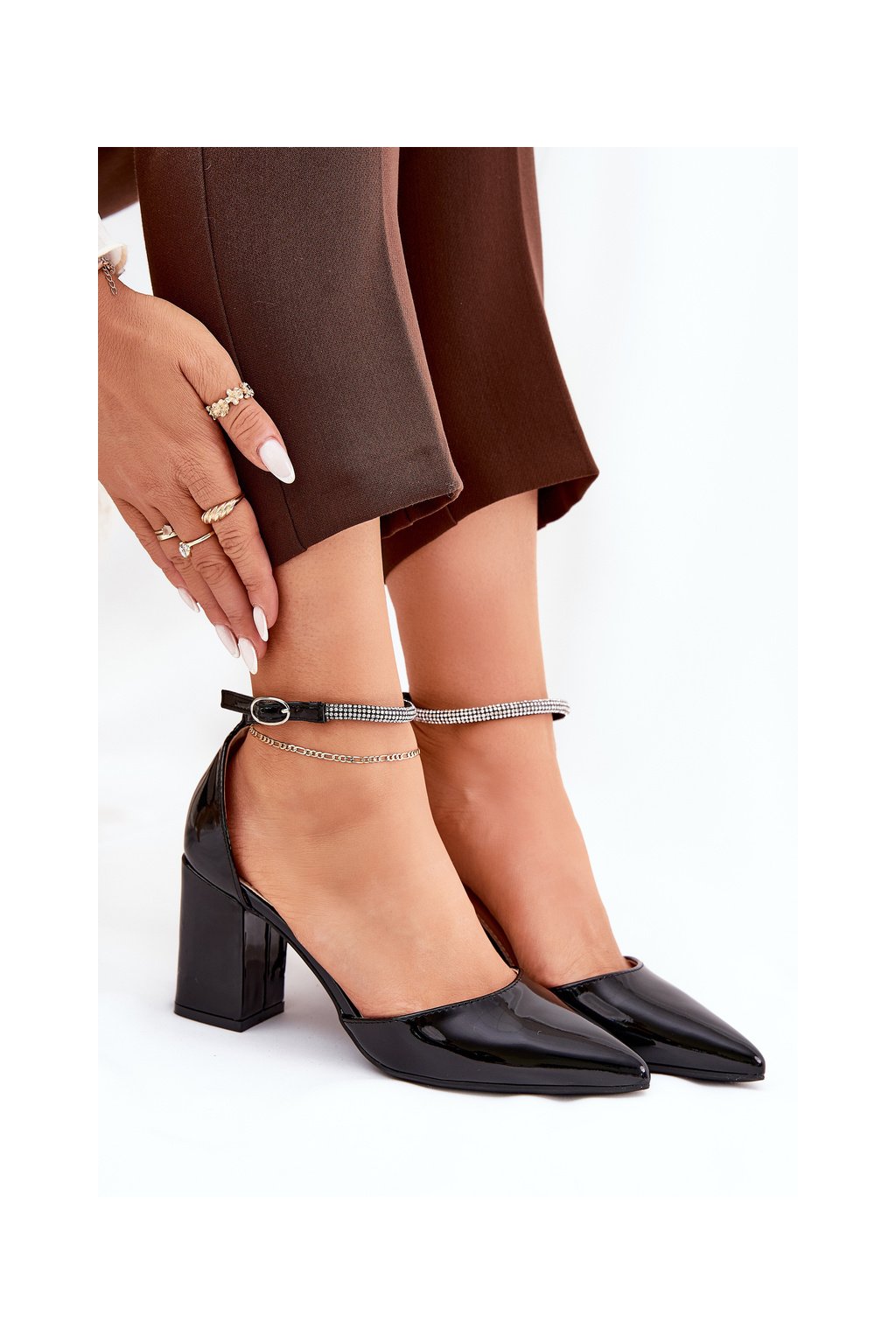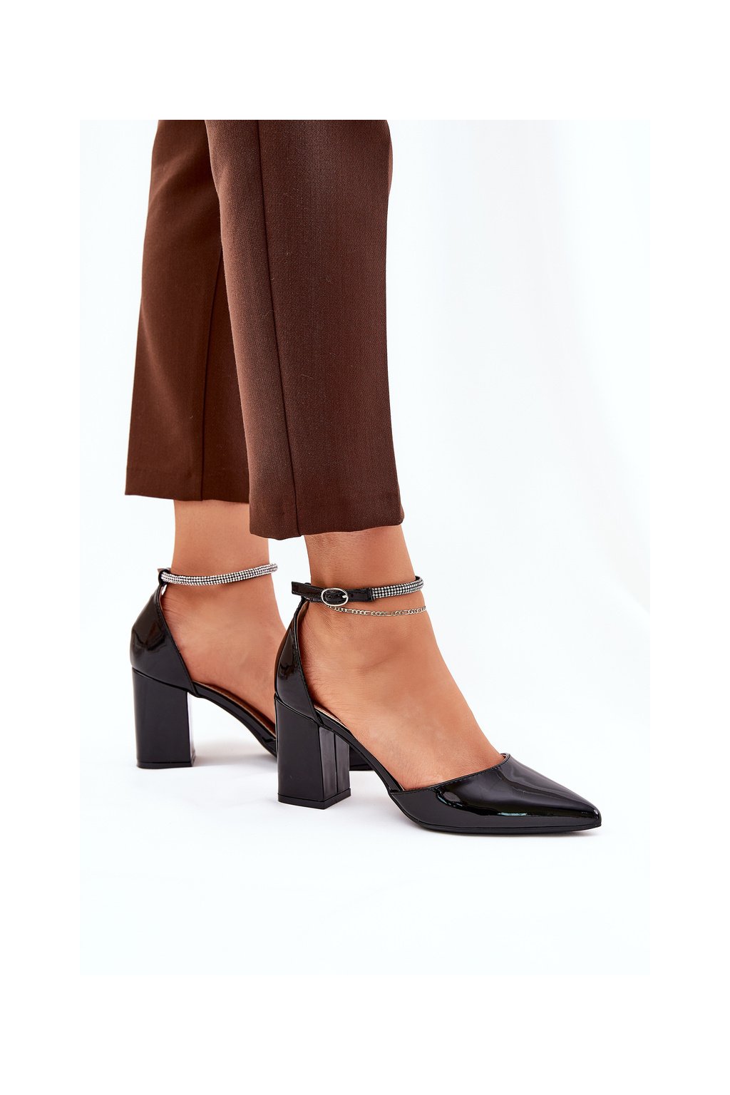 Čierne dámske lodičky s špičatým nosom na stĺpovom podpätku 8 cm, kód produktu LY-9279-1 BLACK