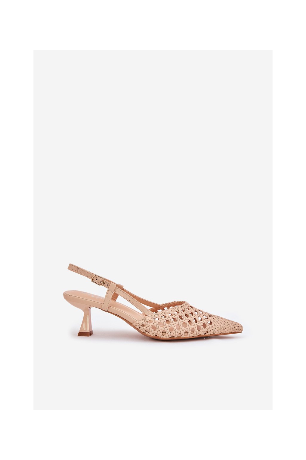 Béžové dámske lodičky s ihlovým podpätkom a odhalenou pätou, syntetický materiál, kód produktu 8338-302 BEIGE