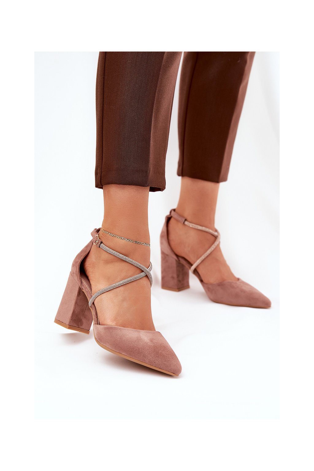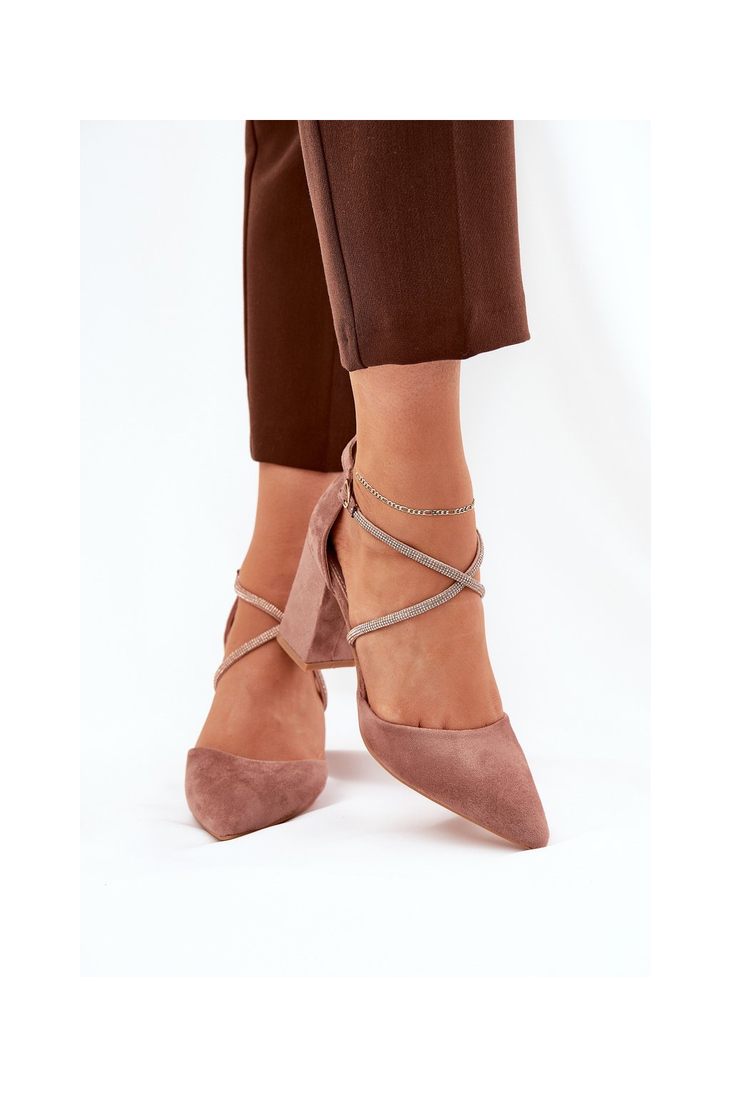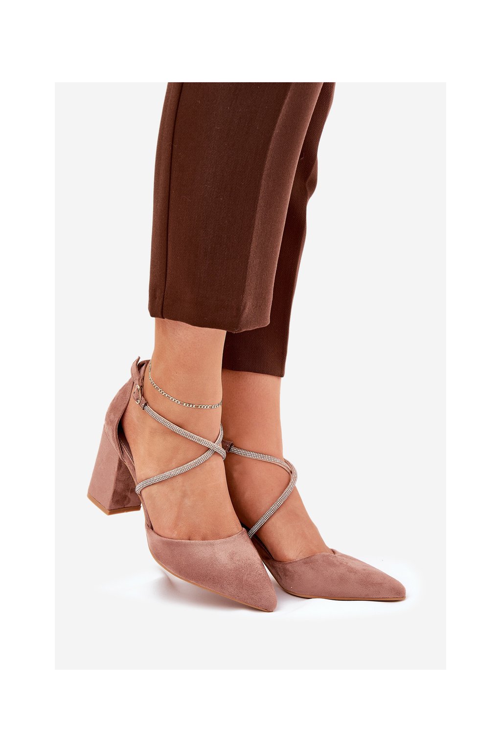 Hnedé dámske lodičky s ihlovým stĺpovým podpätkom 8,5 cm z eko semišu, kód produktu LY-9306-2 NUDE
