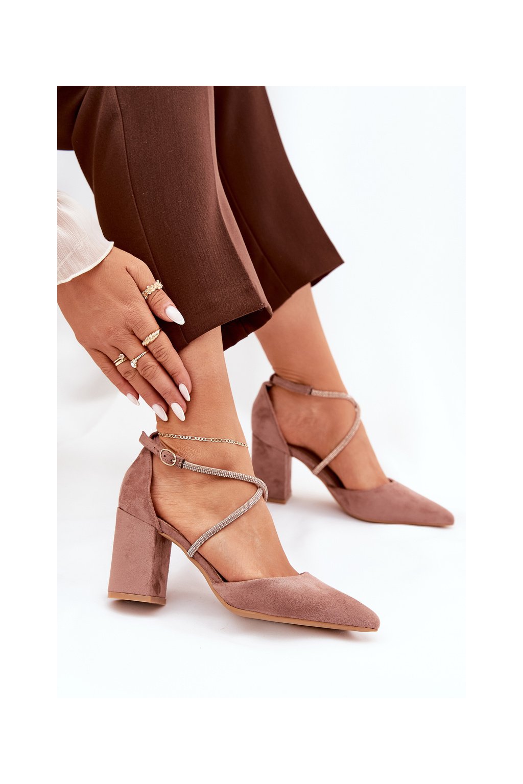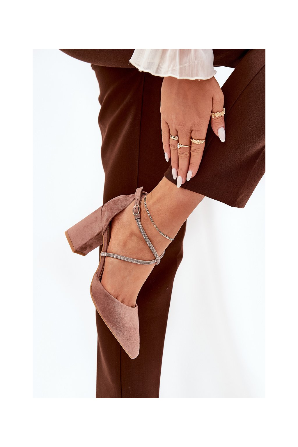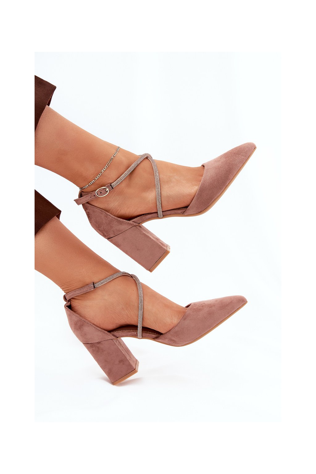 Hnedé dámske lodičky s ihlovým stĺpovým podpätkom 8,5 cm z eko semišu, kód produktu LY-9306-2 NUDE