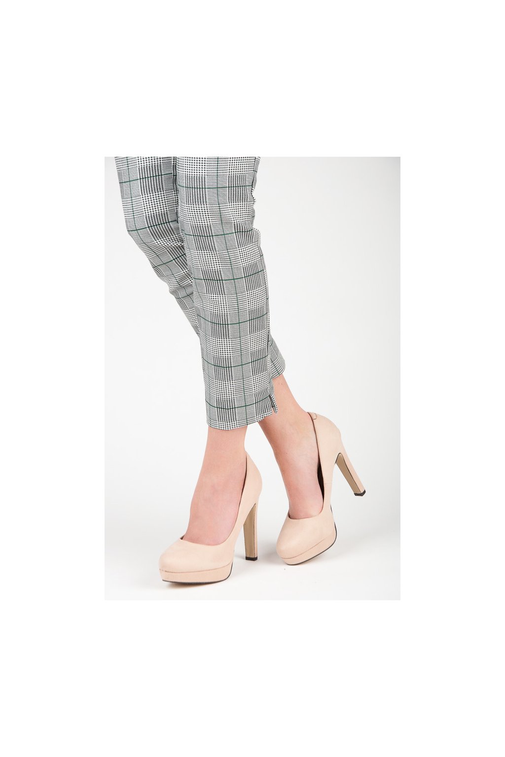 Moderné platformové lodičky na vysokom tenkom opätku vám určite dych vyrazia. Lodičky sú celé matné, vyrobené so semišu. Opätok je tenký, vysoký 13 cm. Platforma meria 2 cm. Lodičky sú celé béžové, no v ponuke ich nájdete aj v ďalších farbách (čierna, sivá, ružové, červená).