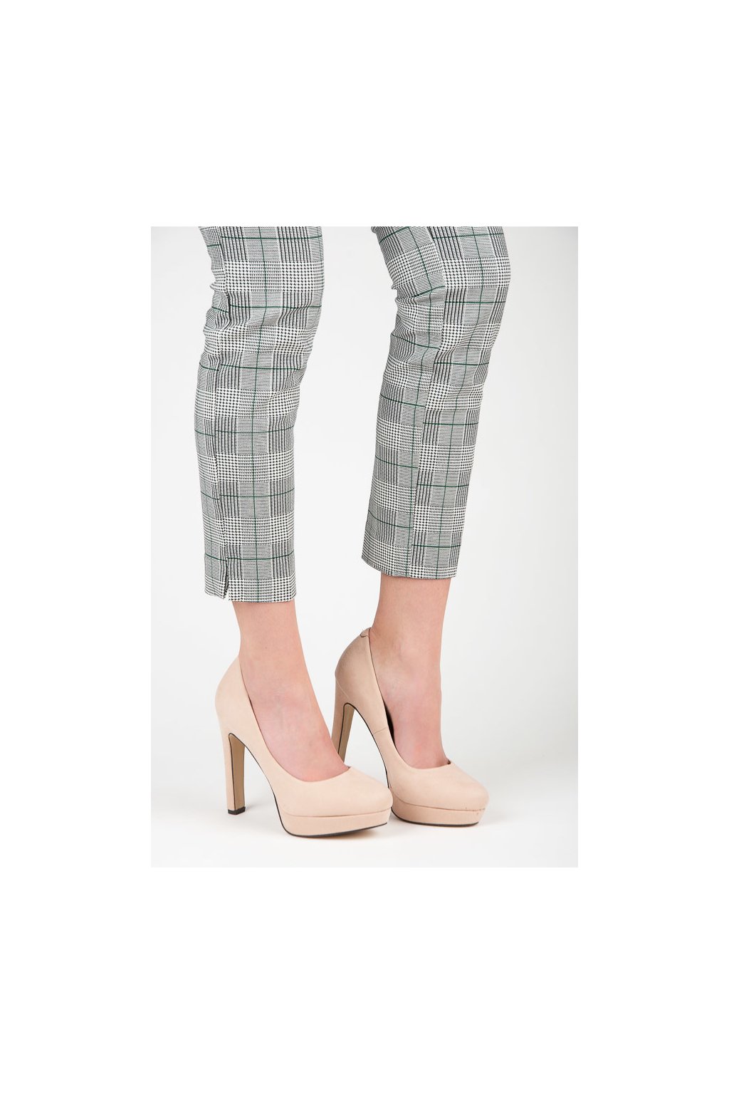 Béžové dámske semišové lodičky na platforme s kolíkovým opätkom a zastavanou pätou, kód produktu Vices 9143-14BE 38