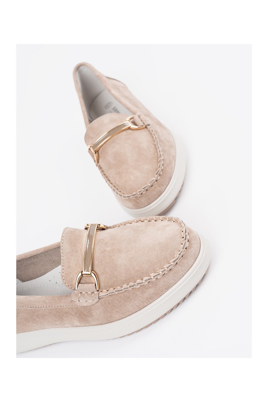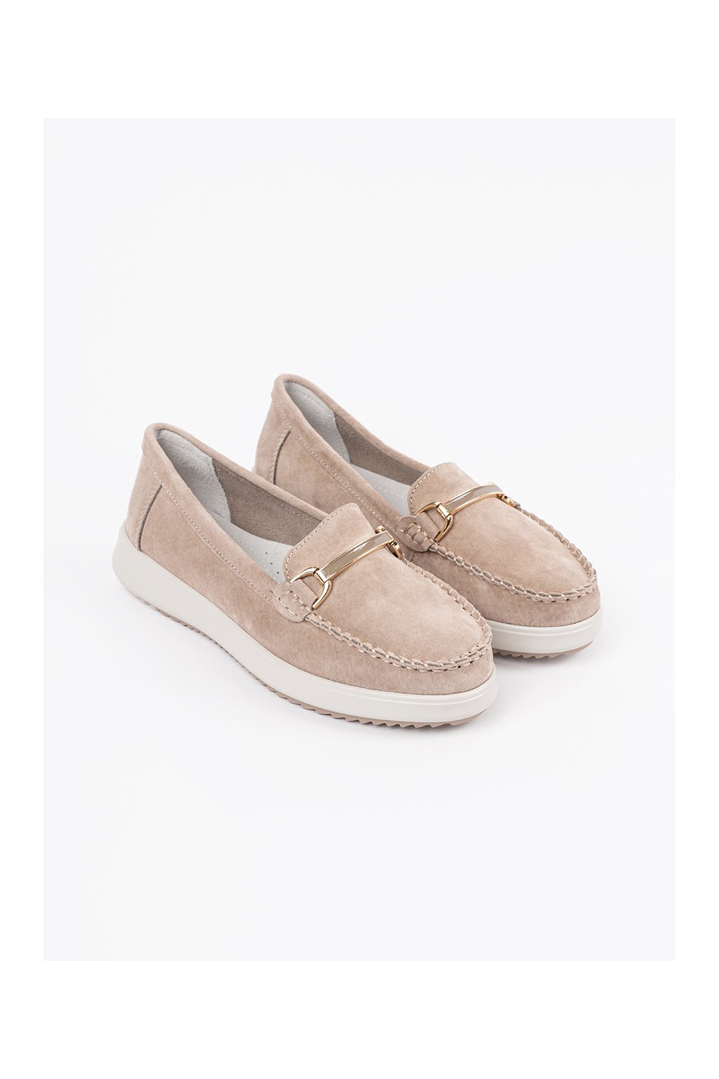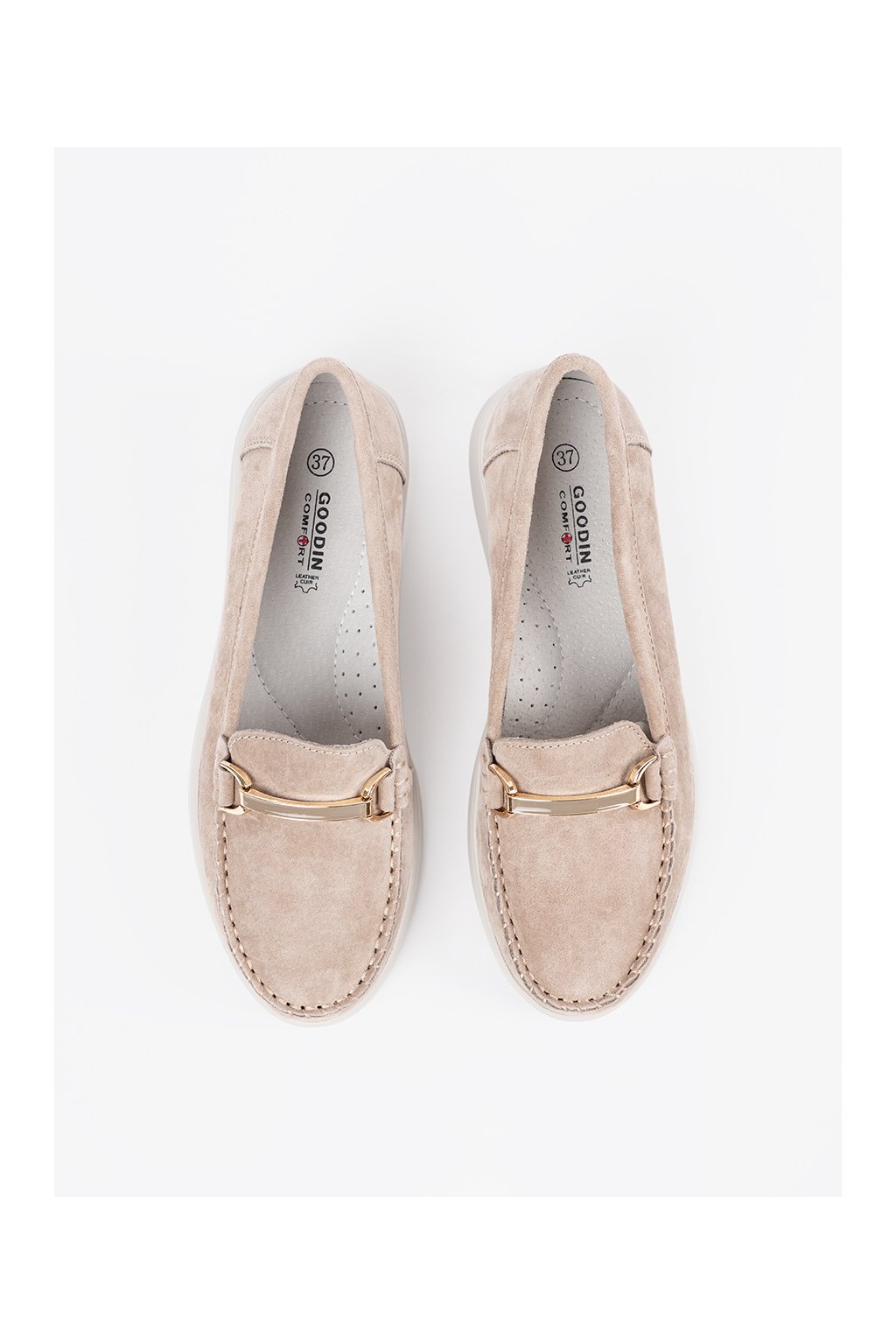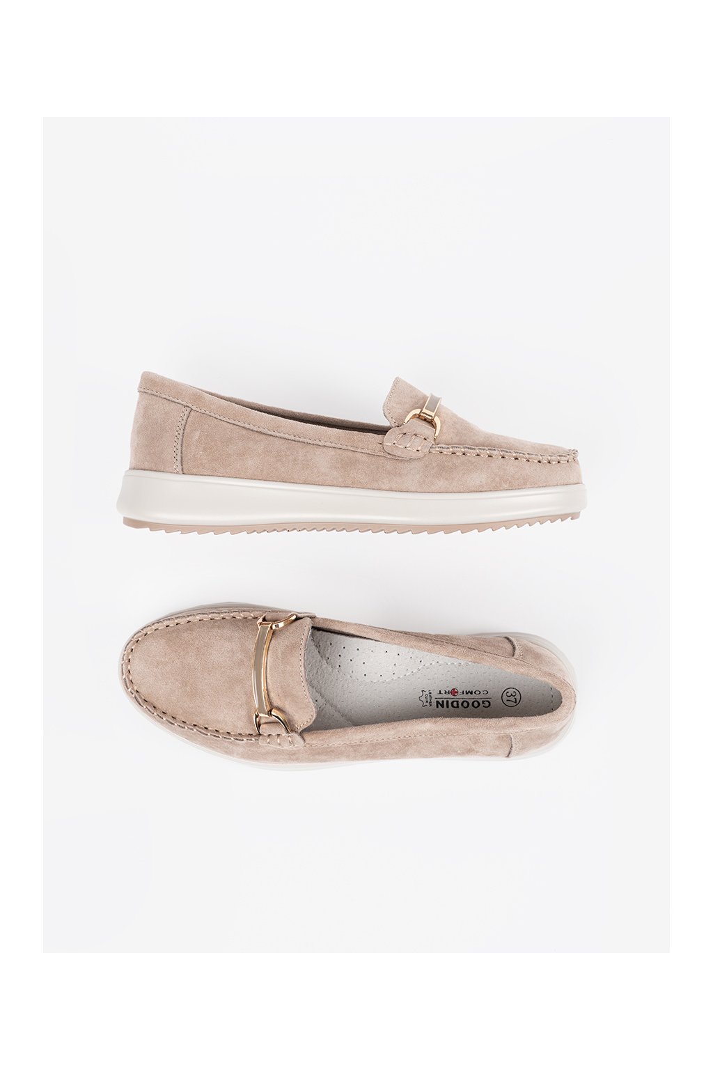 Béžové dámske kožené mokasíny na platforme s rovnou podrážkou, kód produktu GD-LX1048APR