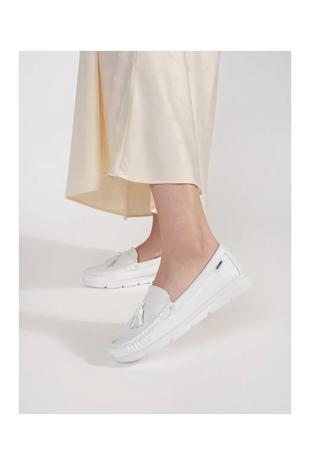 Biele dámske mokasíny na platforme z prírodnej kože, GD-FL685W
