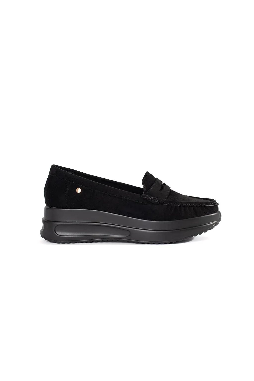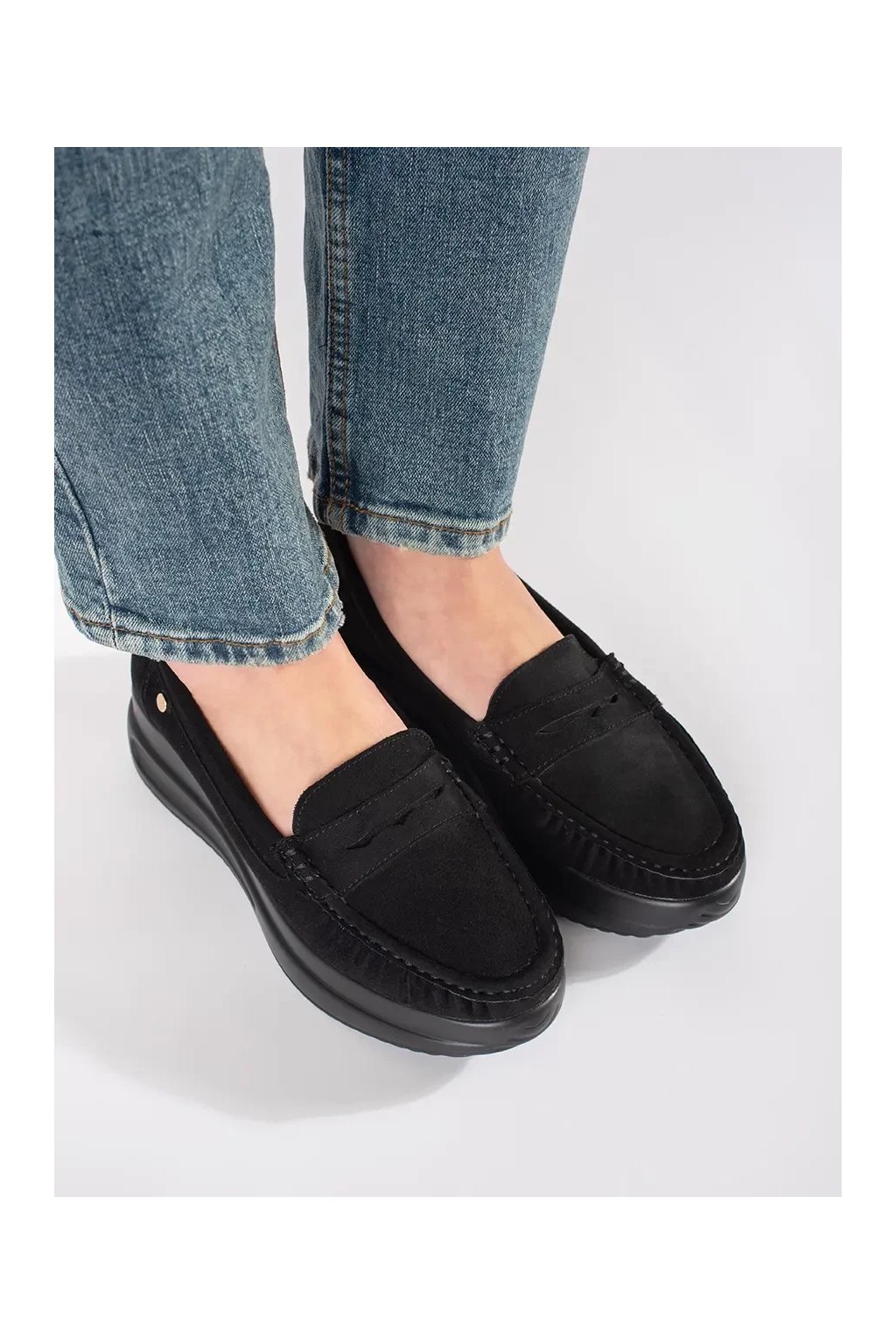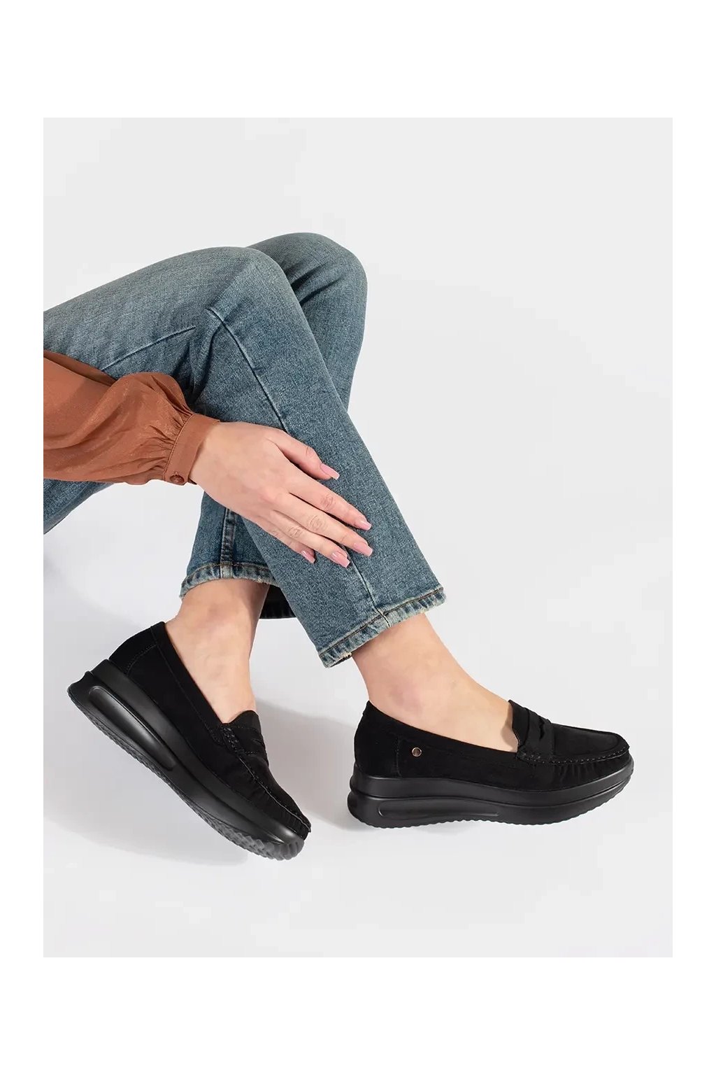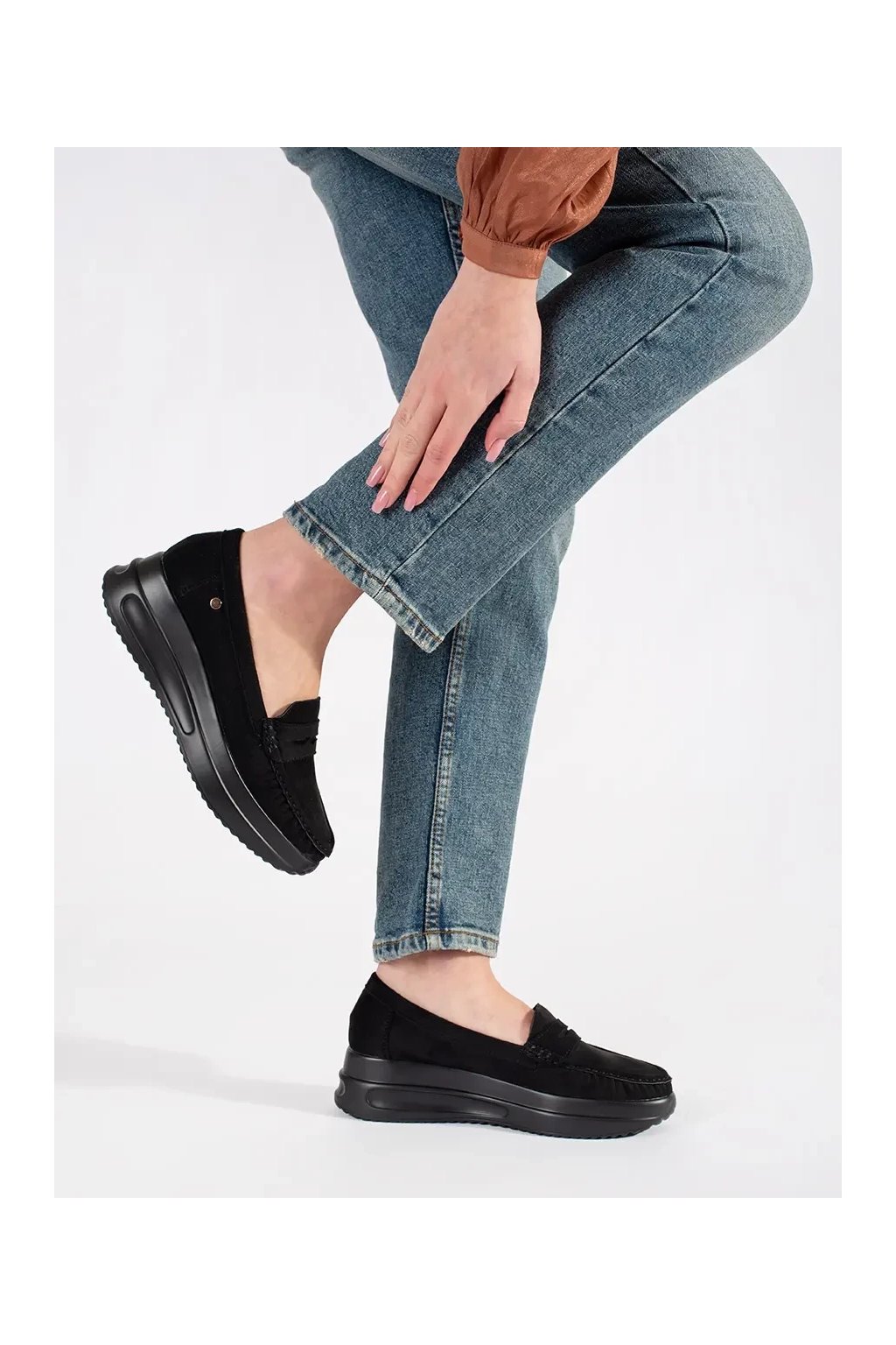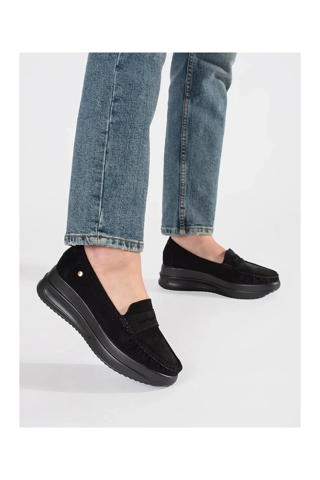 Čierne dámske semišové mokasíny na platforme s prírodnou koženou vložkou, kód produktu GD-FL704A-B