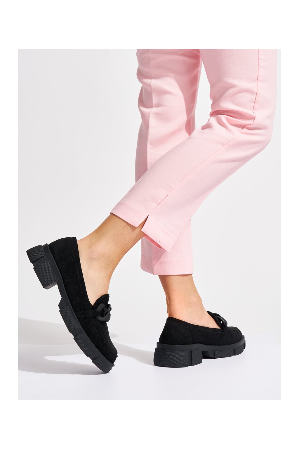 Tyto mokasíny byly navrženy pro moderní ženy, které chtějí spojit pohodlí s elegancí. Jsou vyrobeny z kvalitní ekologické semišové kůže v černé barvě, která dodává botám luxusní vzhled. Ozdobný řetízek na přední části dodává botám jedinečný a moderní nádech.