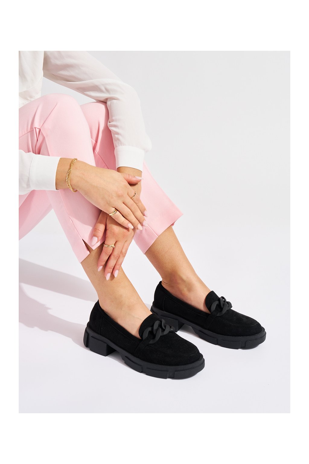 Černé dámské mokasíny s ozdobným řetízkem – pohodlí s nádechem elegance