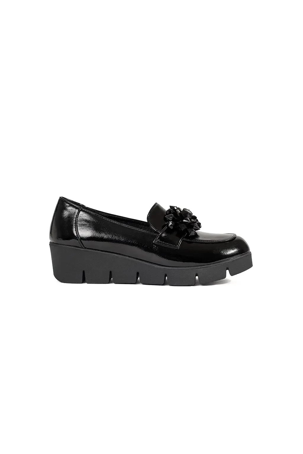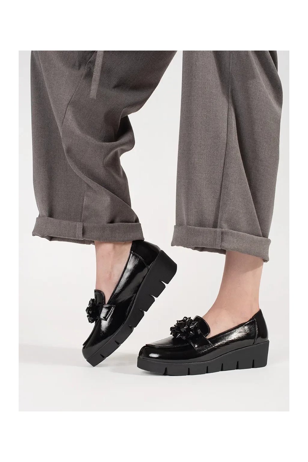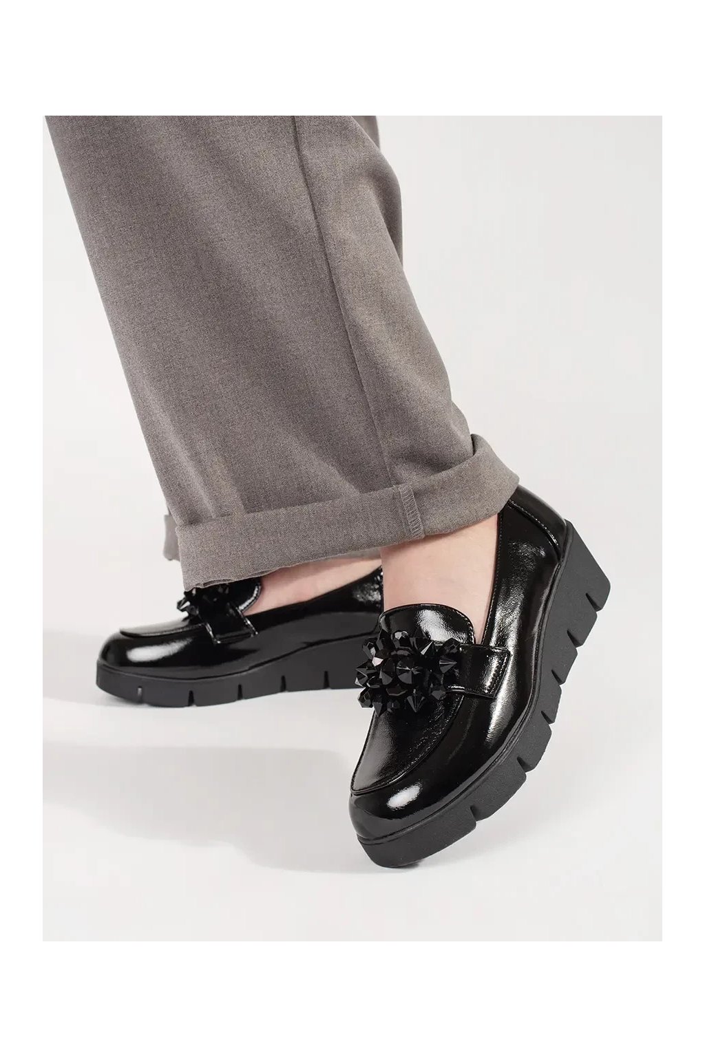 Čierne dámske lakónske mokasíny na platforme GD-FL784B