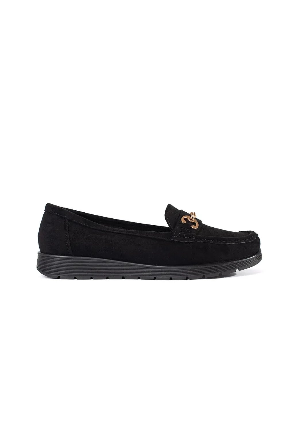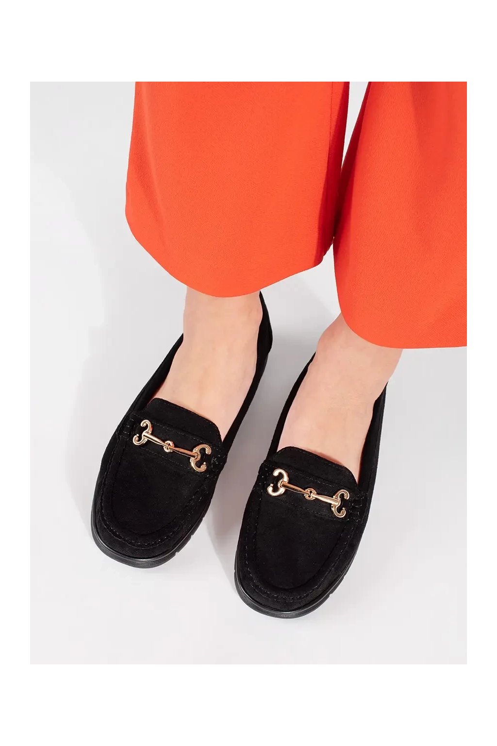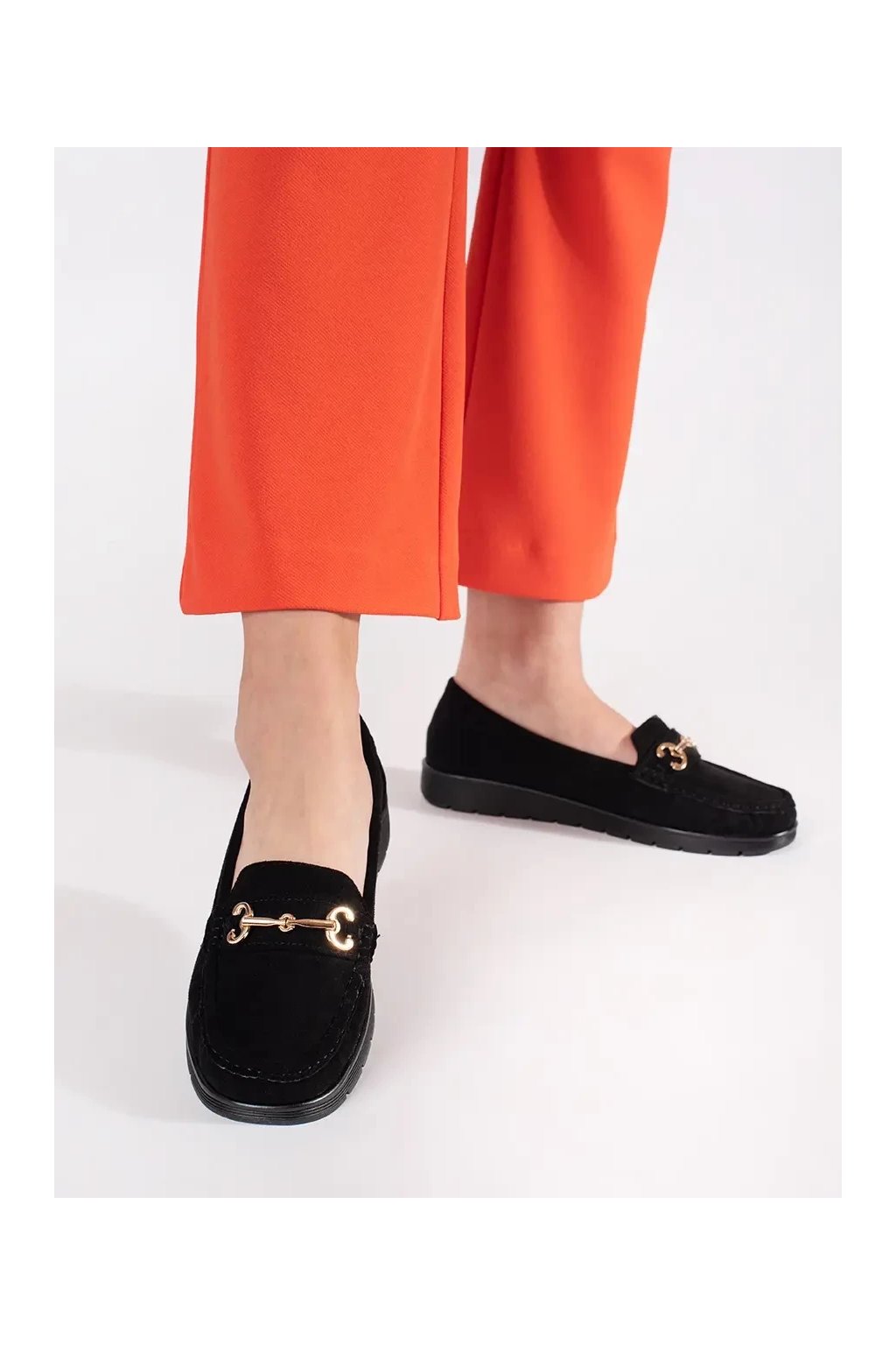 Čierne dámske semišové mokasíny na platforme s prírodnou koženou vložkou GS70P-B