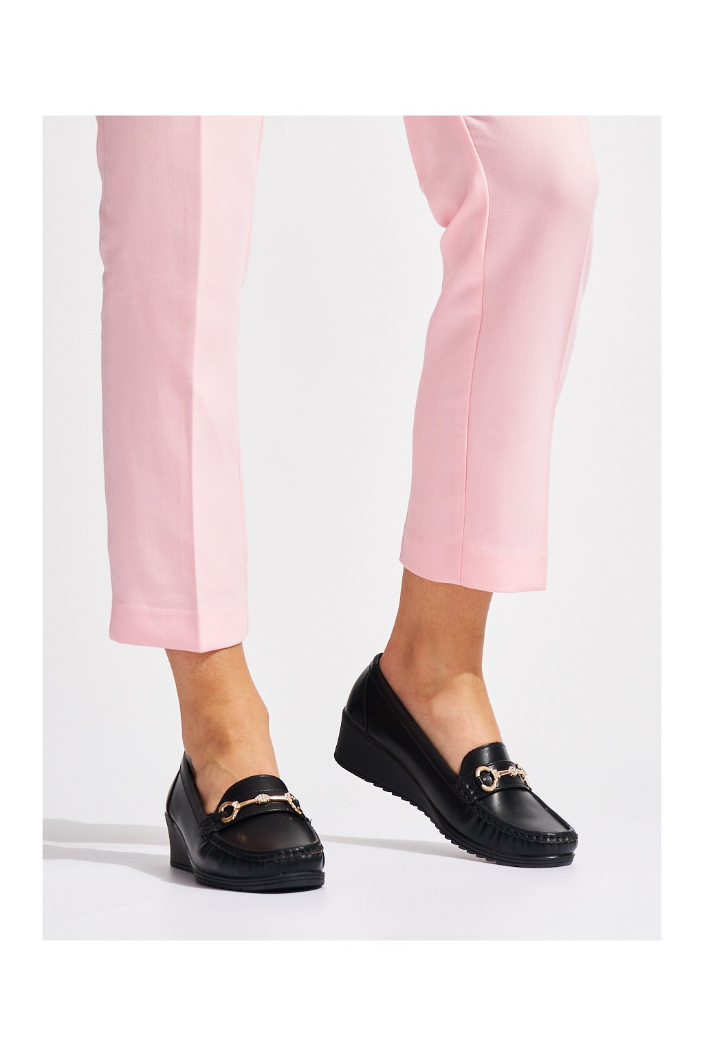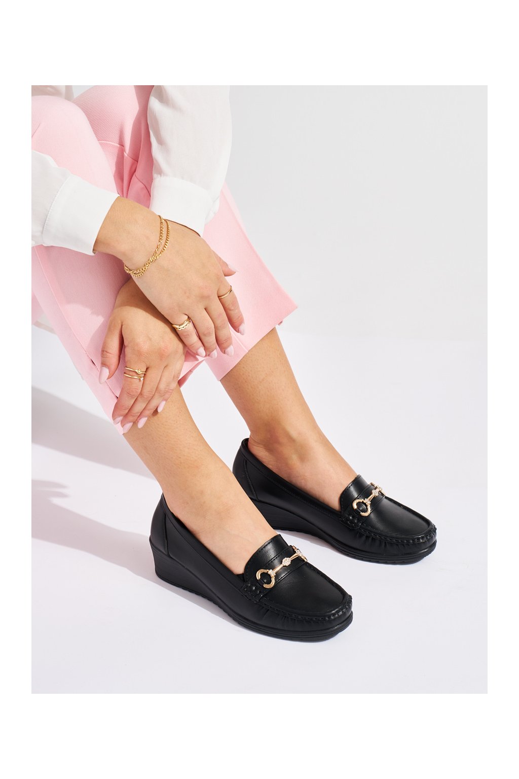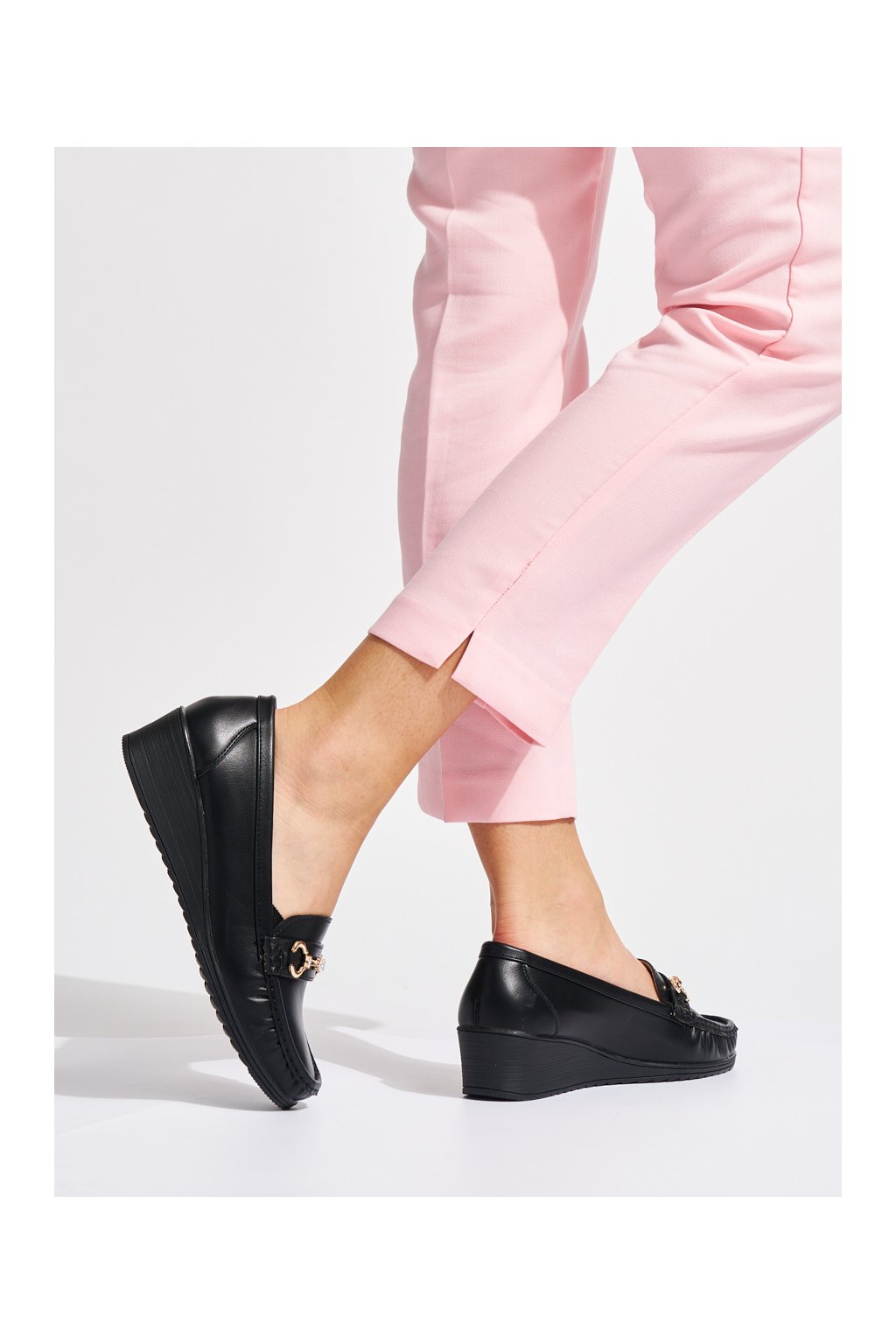 Čierne dámske mokasíny na platforme z eko kože, kód produktu JU065B