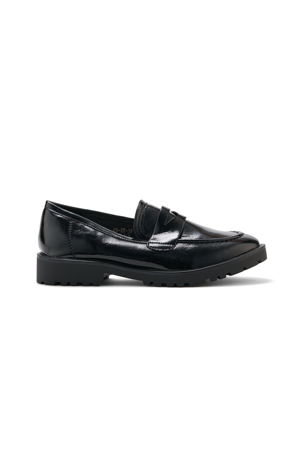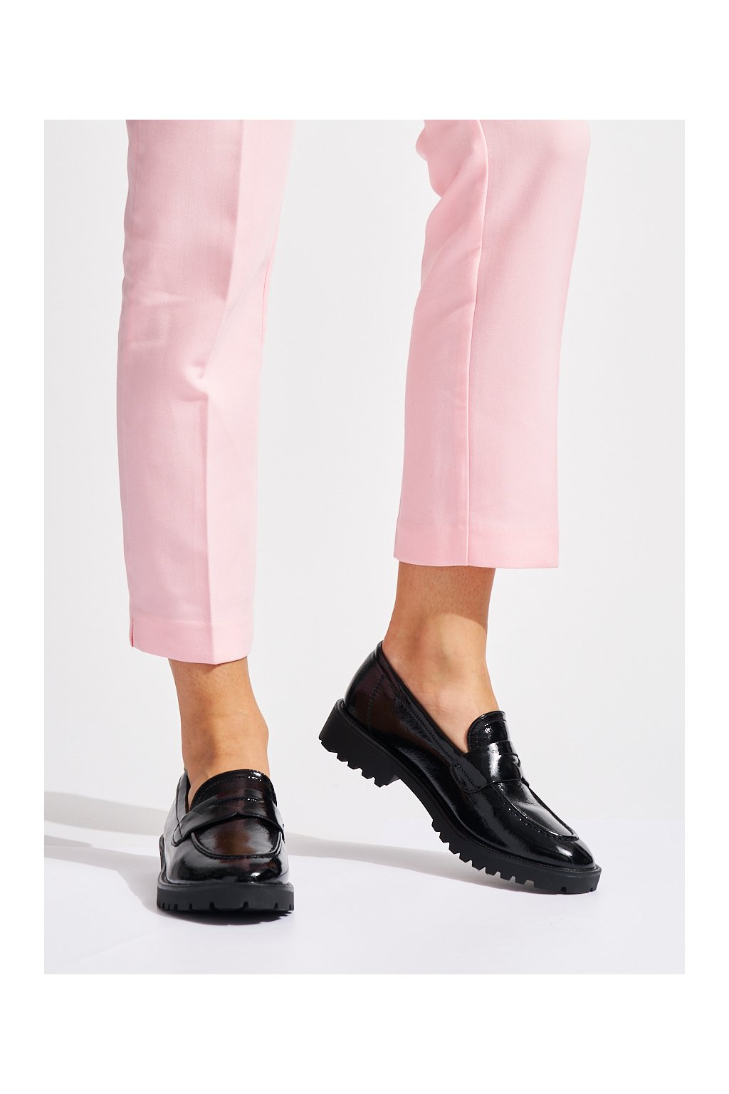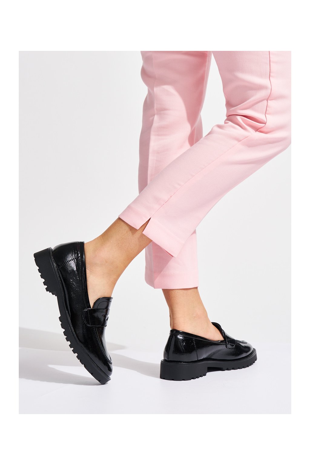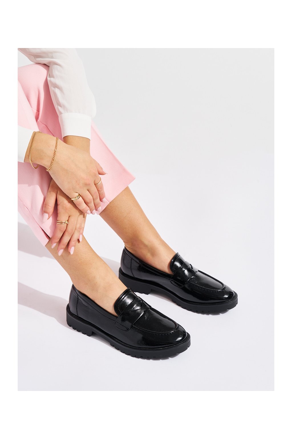 Čierne dámske lakované mokasíny na platforme s prírodnou koženou vložkou, kód produktu GD-XR-381A-B