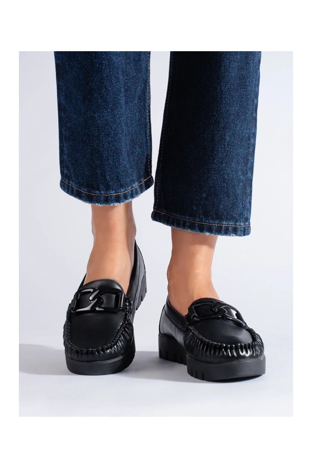 Černé mokasíny z ekologické kůže jsou univerzálním kouskem, který by neměl chybět v žádném šatníku. Hodí se k různým příležitostem - na každodenní nošení, do práce nebo na slavnostní události. Snadno se kombinují s různými styly oblečení a vždy dodají vašemu outfitu šmrnc.
