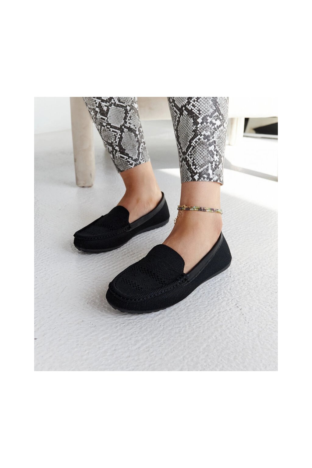 Čierne dámske látkové mokasíny s mandľovou špičkou, kód produktu DF881 - GM