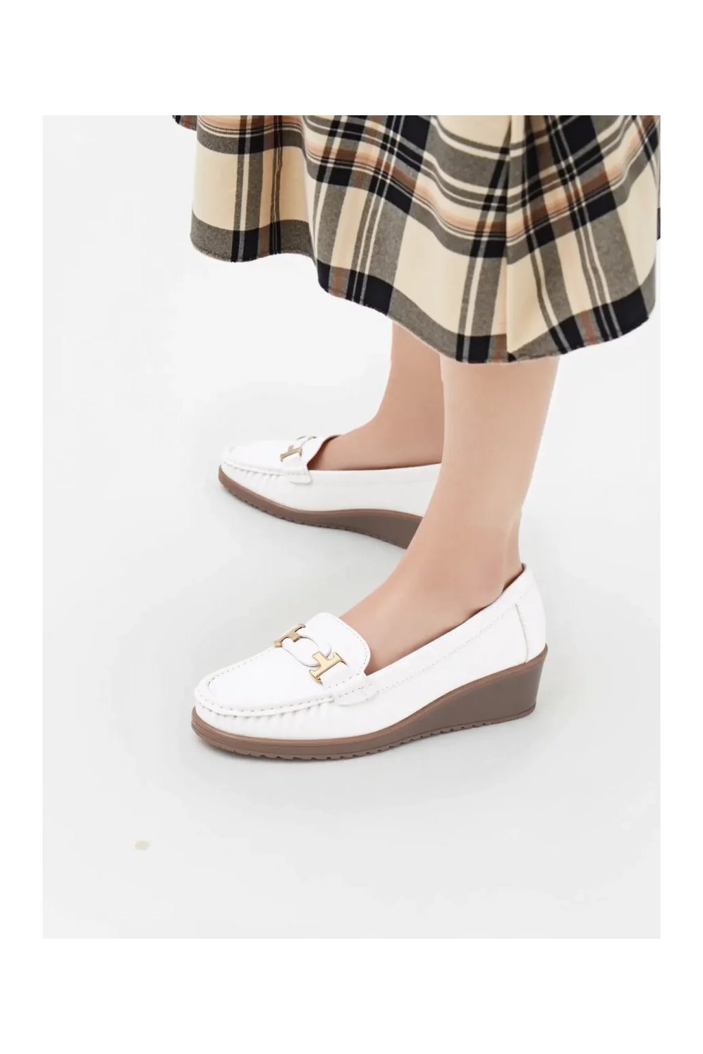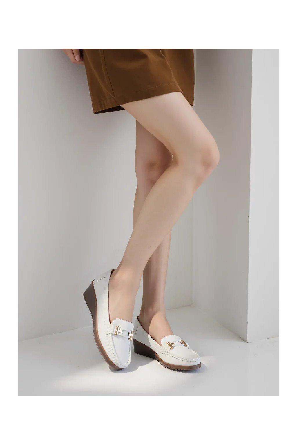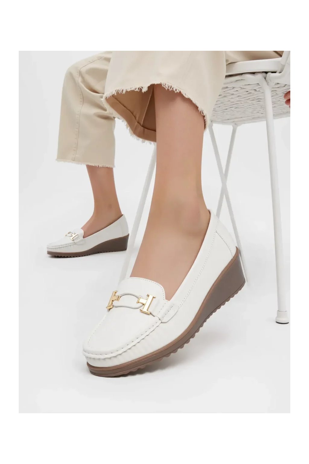 Biele dámske mokasíny z ekokože na bežný deň, zdobené, kód QQ-12