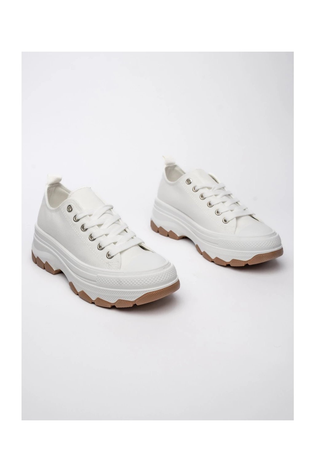 Dámske biele textilné mokasíny s kontrastnou podrážkou, neformálne, mestský štýl SW-015