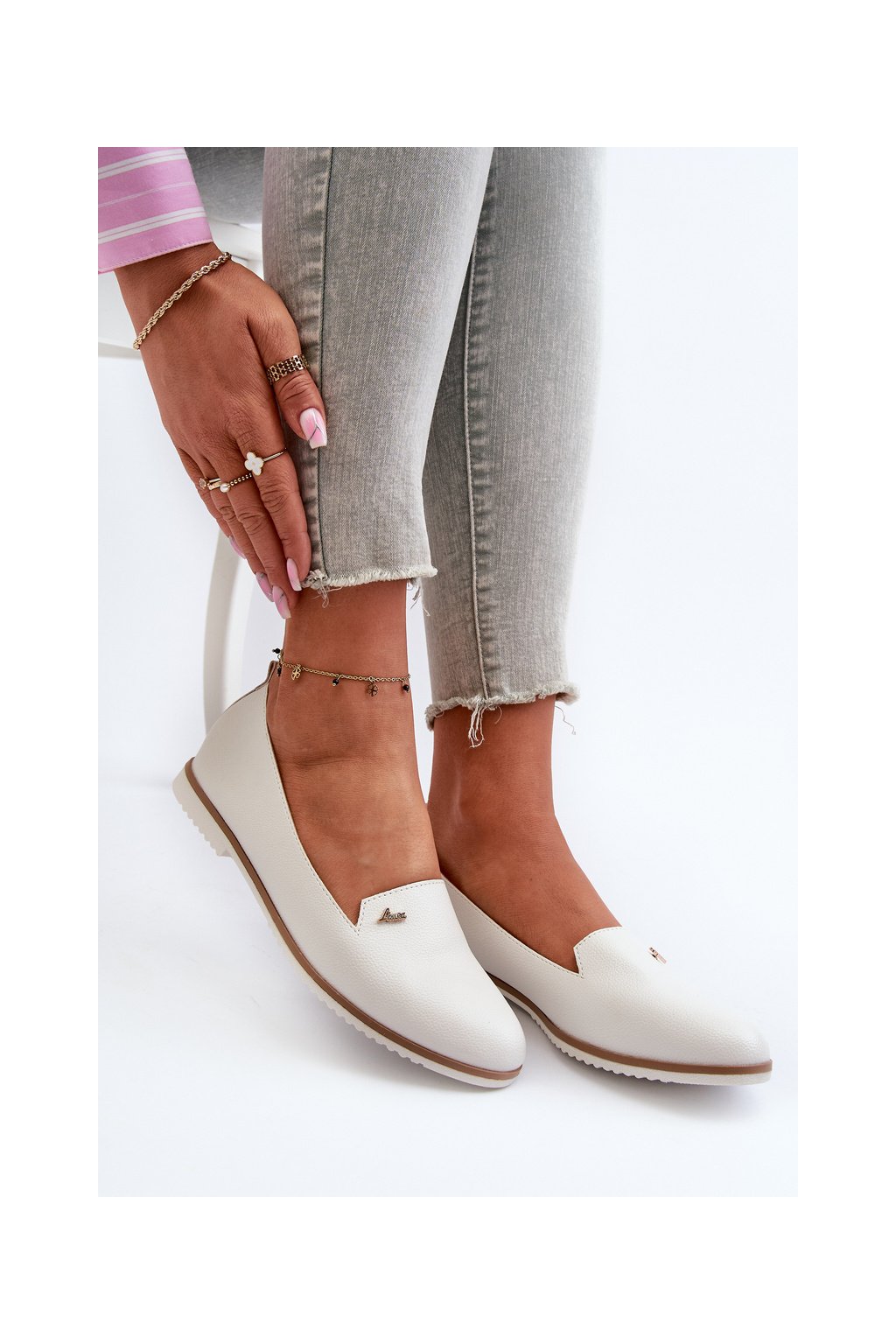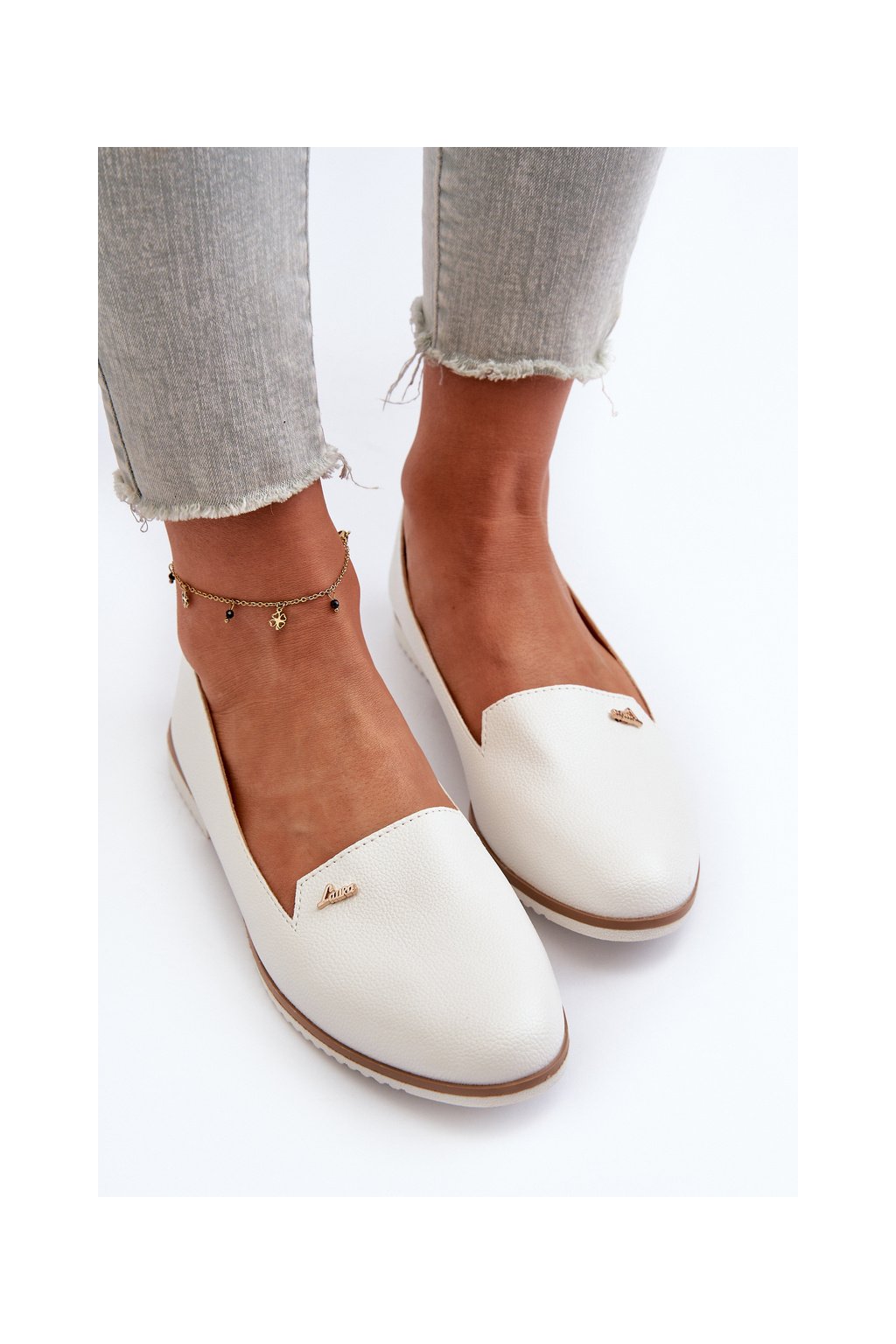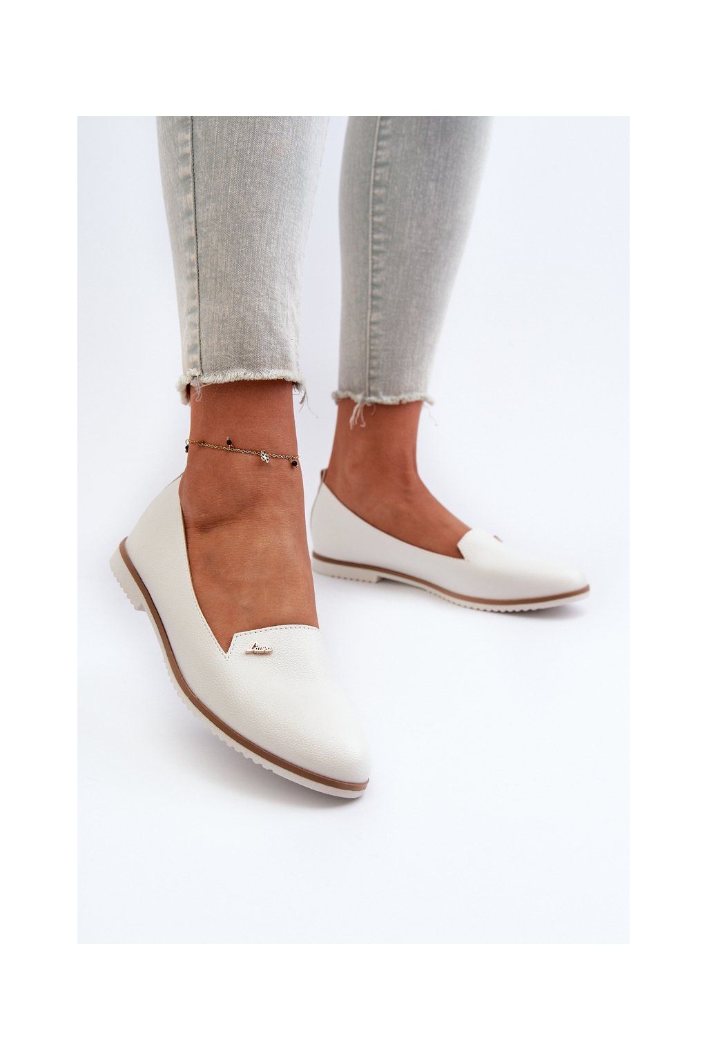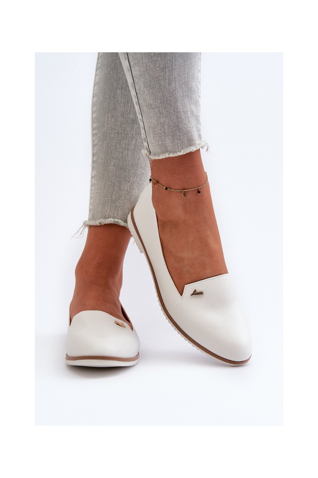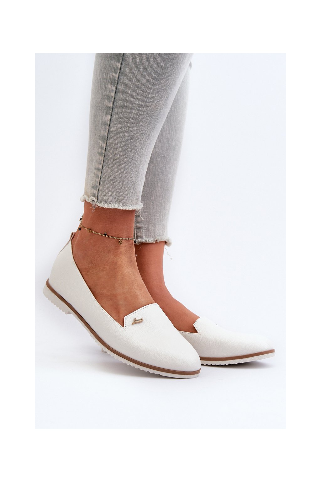 Biele dámske mokasíny z ekokože, kód W-98 WHITE